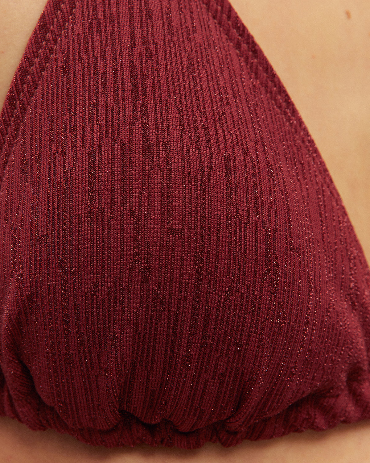 Bikini triangular con braguita con lazos. Tejido de lúrex.