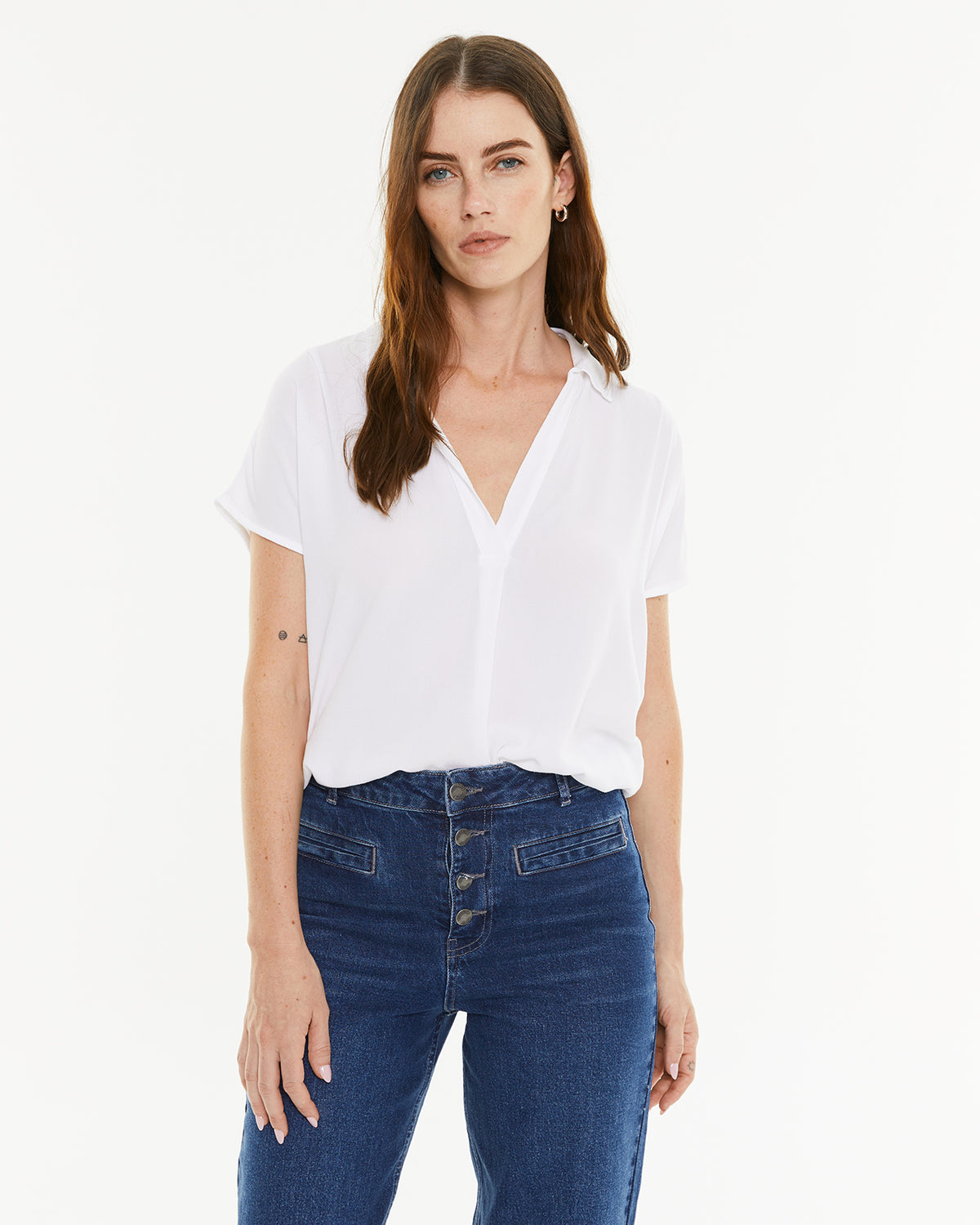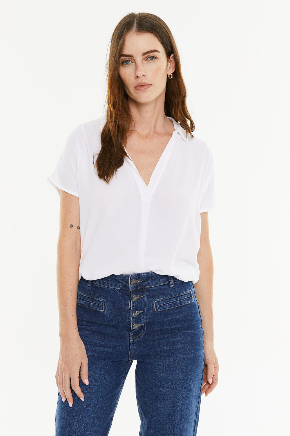 Women's polo-neck short-sleeved shirt. Sustainable garment.