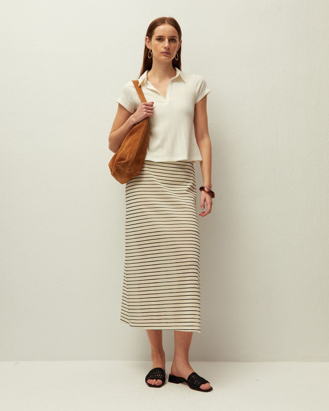 Camiseta de canalé cuello polo. Prenda sostenible.