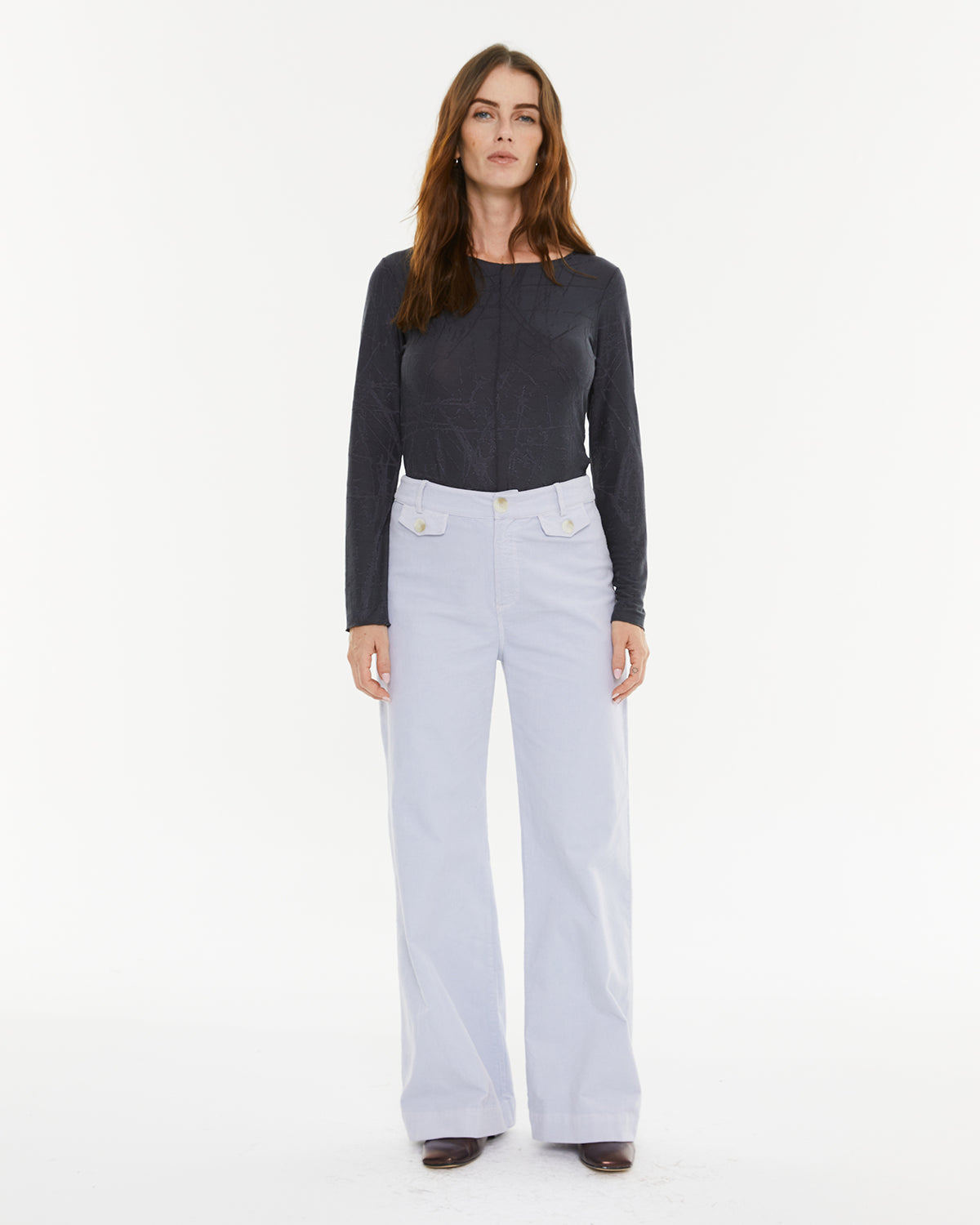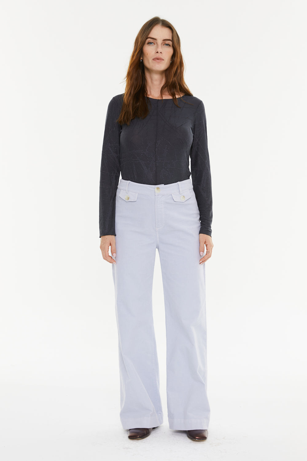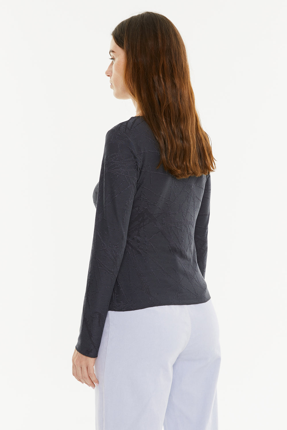Women's T-shirt with jacquard fabric, round neckline, long sleeves and mini turn-up detail on the finishes.