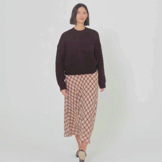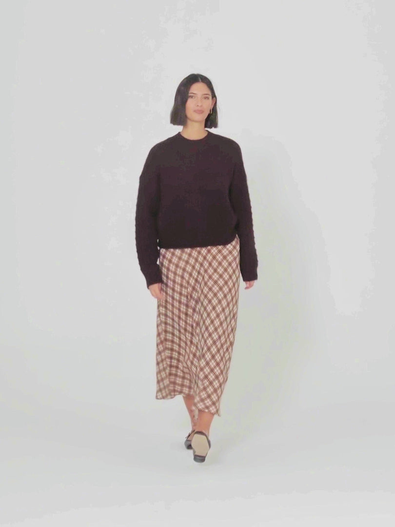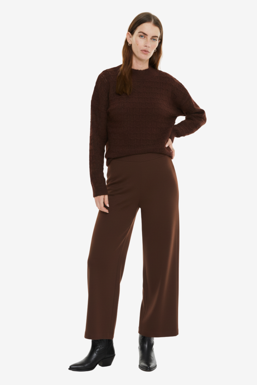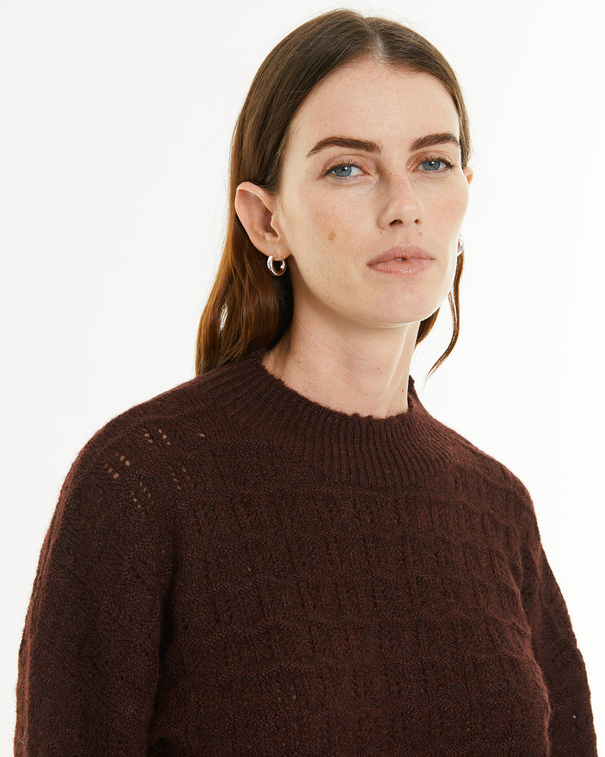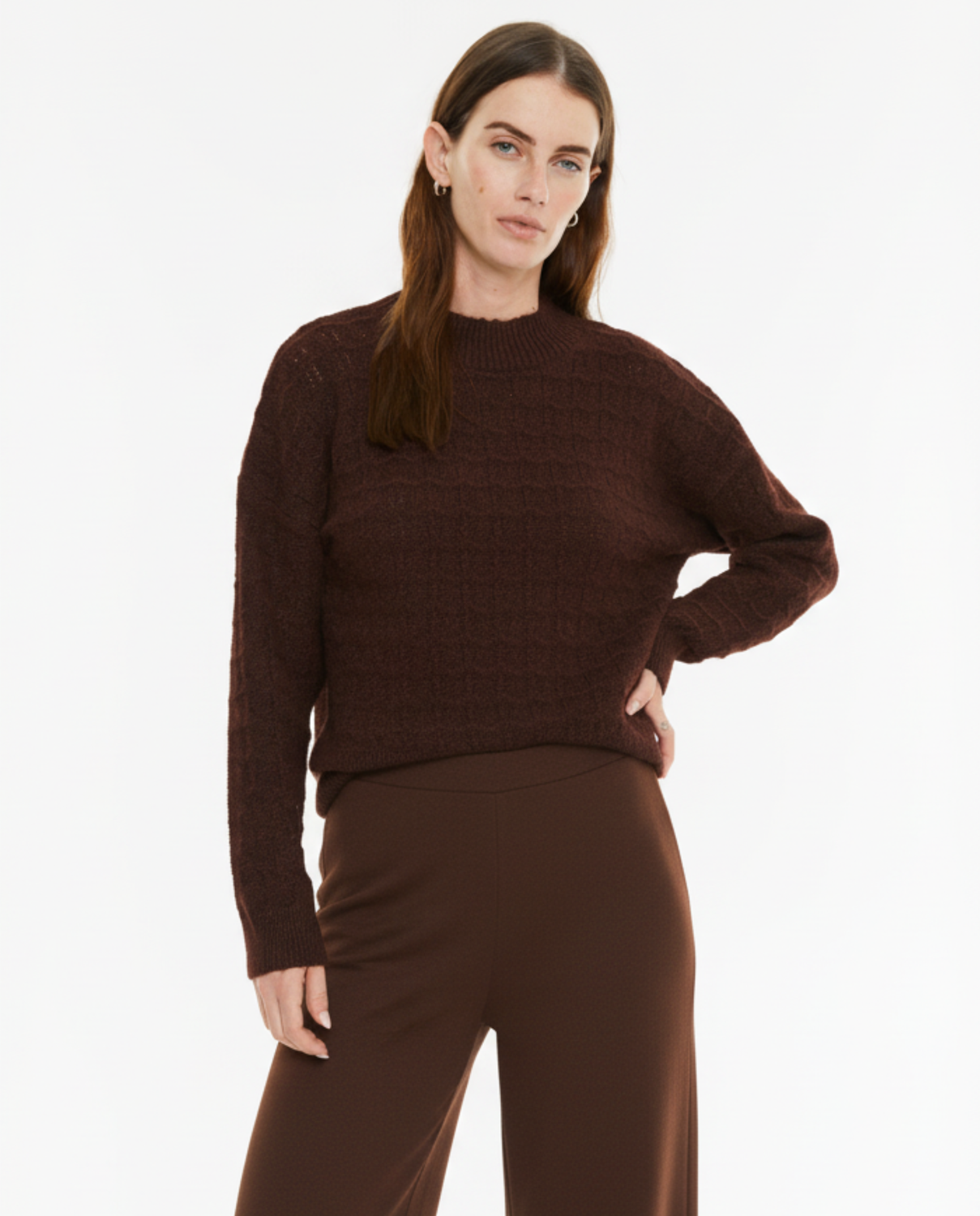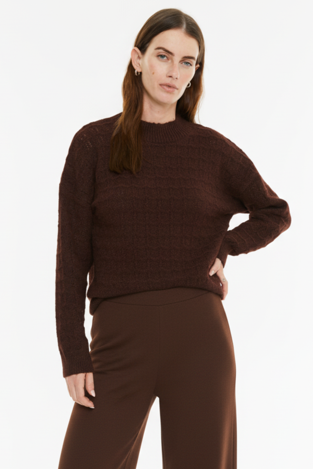 Women's sweater, round neck and structured knit. Sustainable garment.