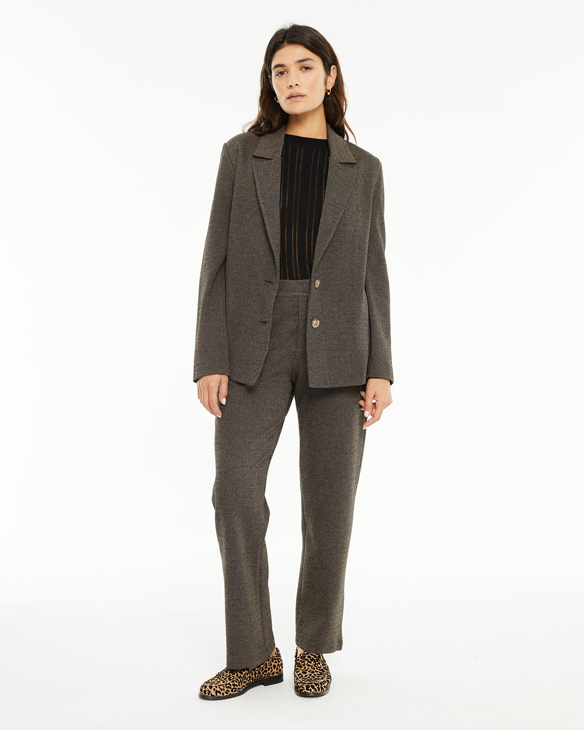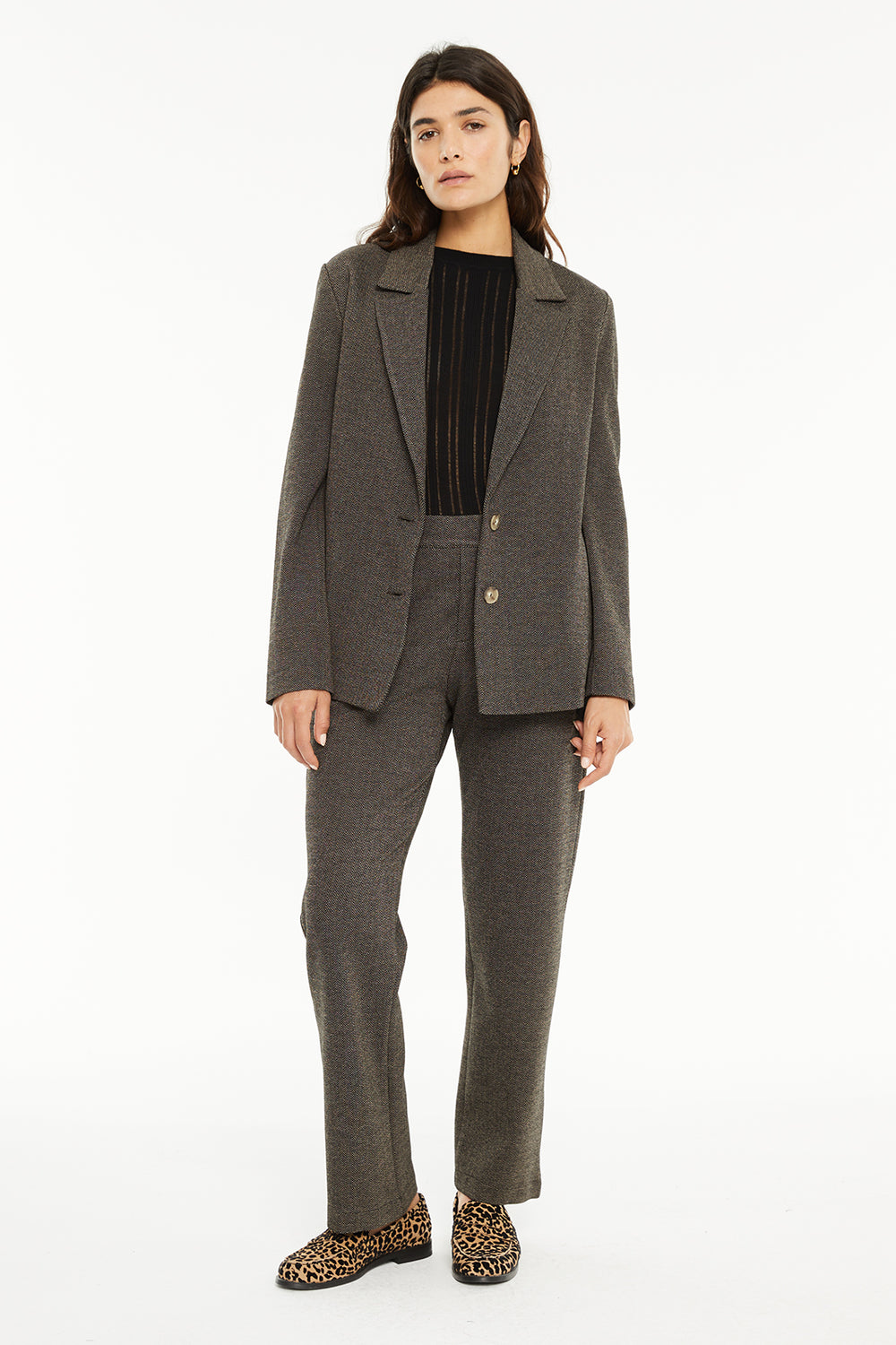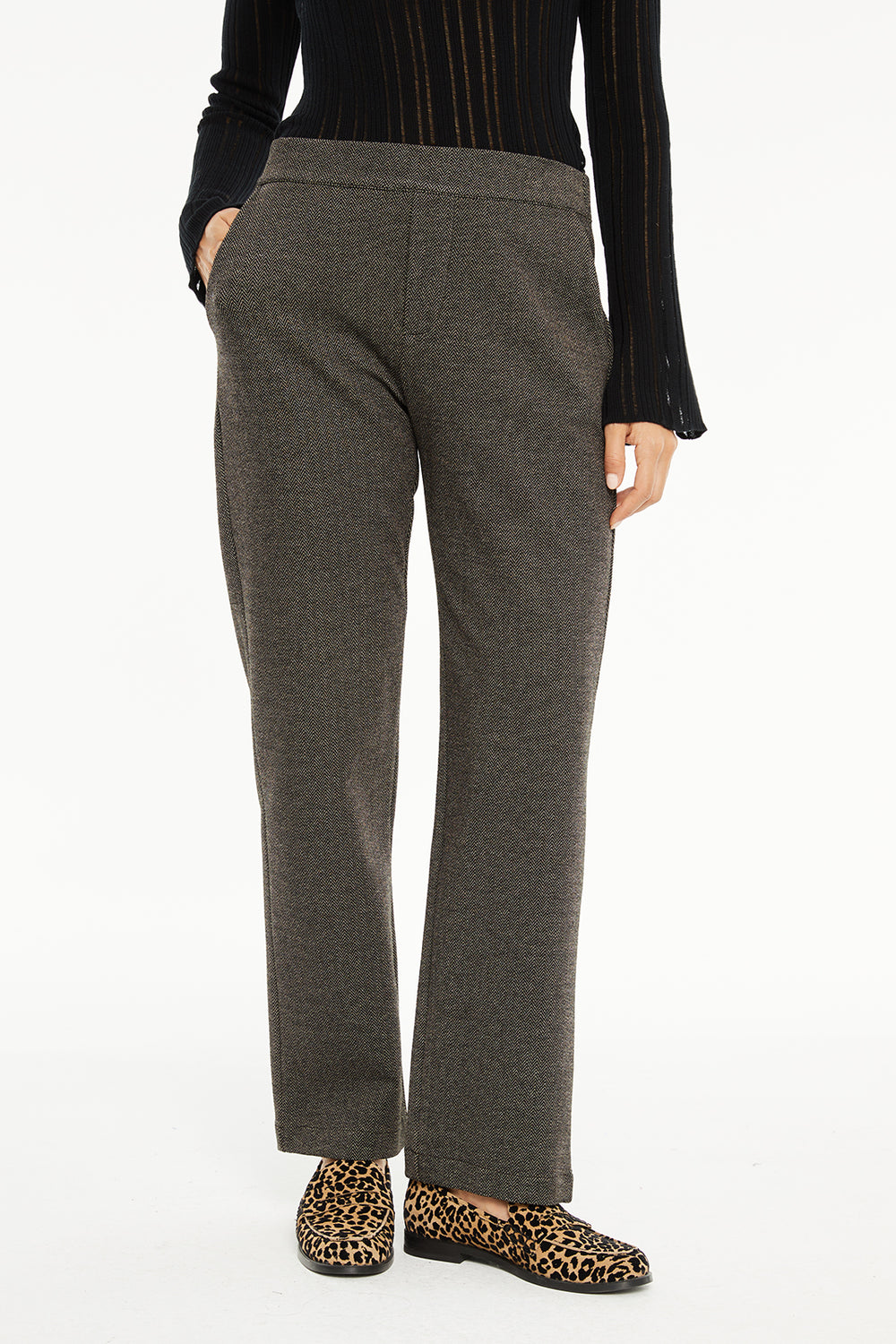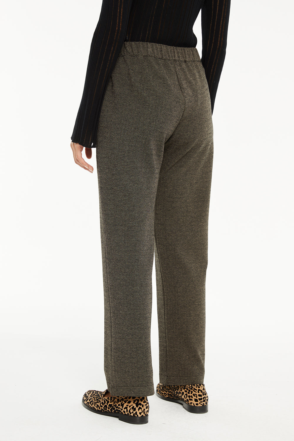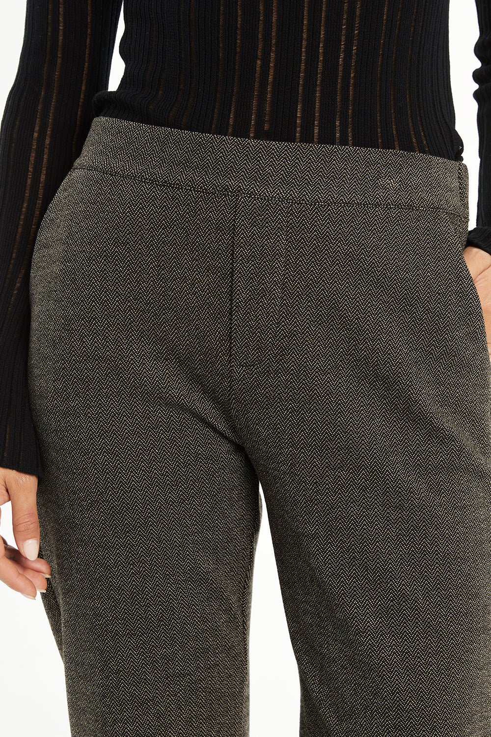 Women's trousers with elasticated waistband, herringbone jacquard fabric and side pockets.
