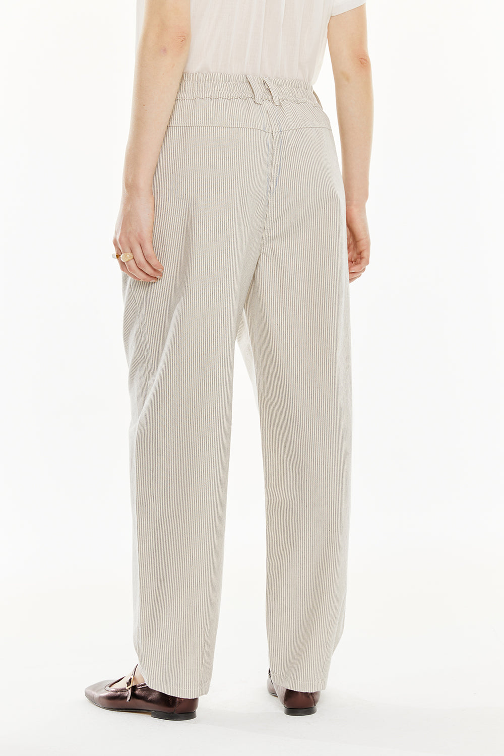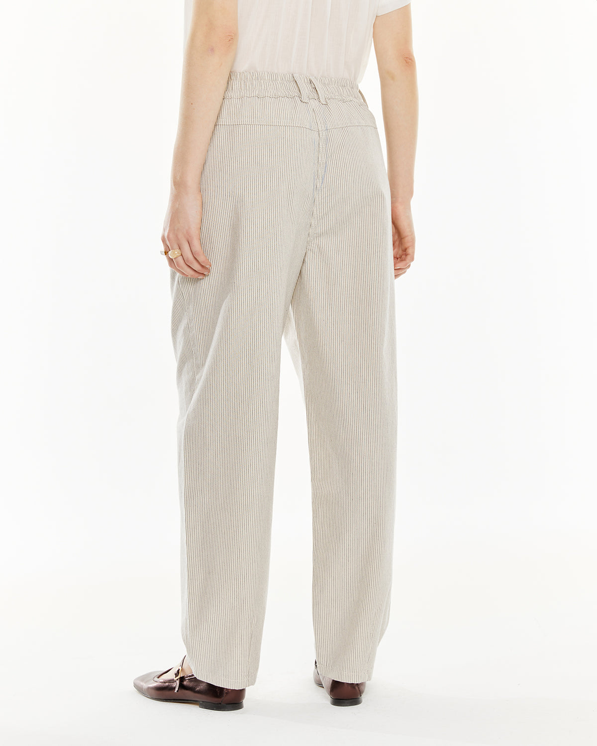 Striped pants with elastic waistband