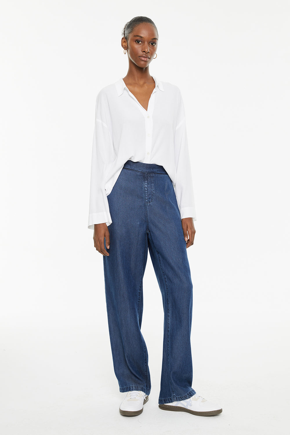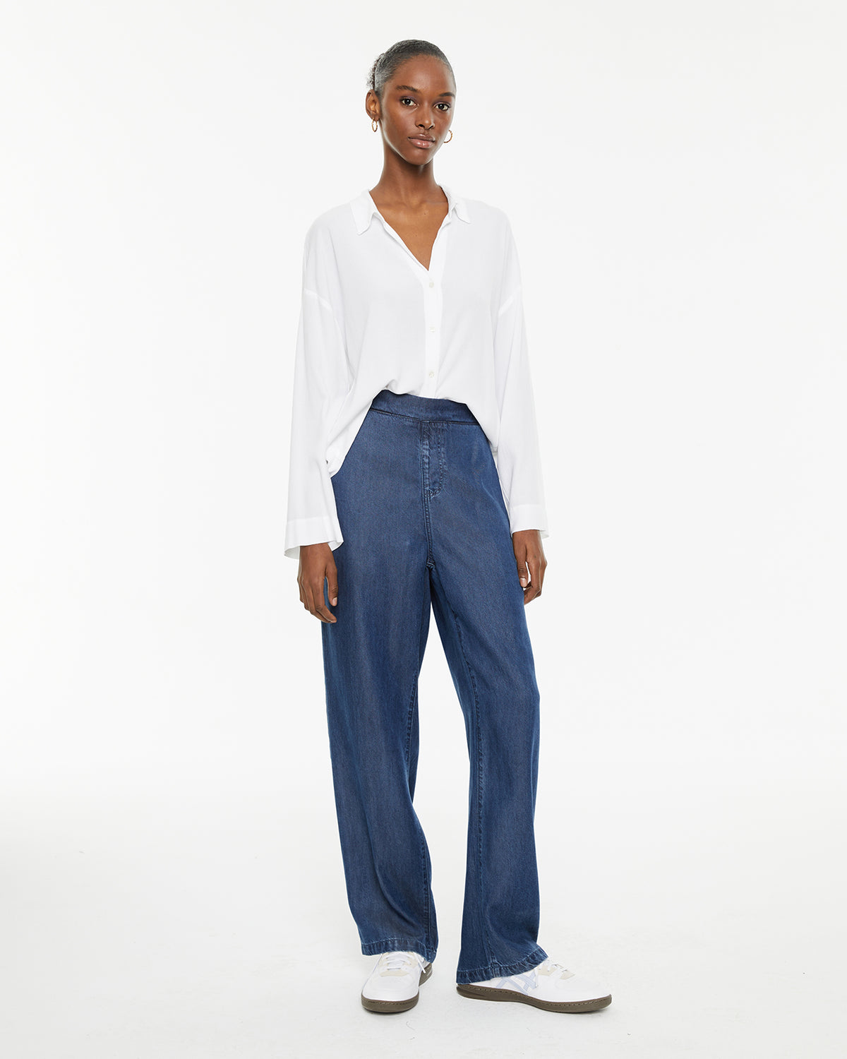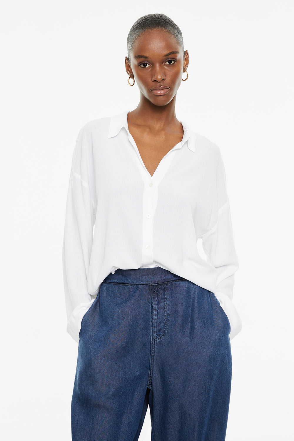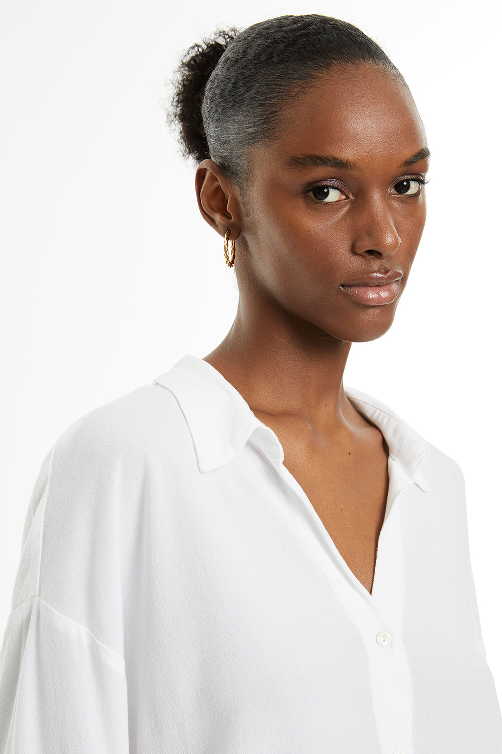 Chemise blanche fluide à manches longues et fermeture boutonnée