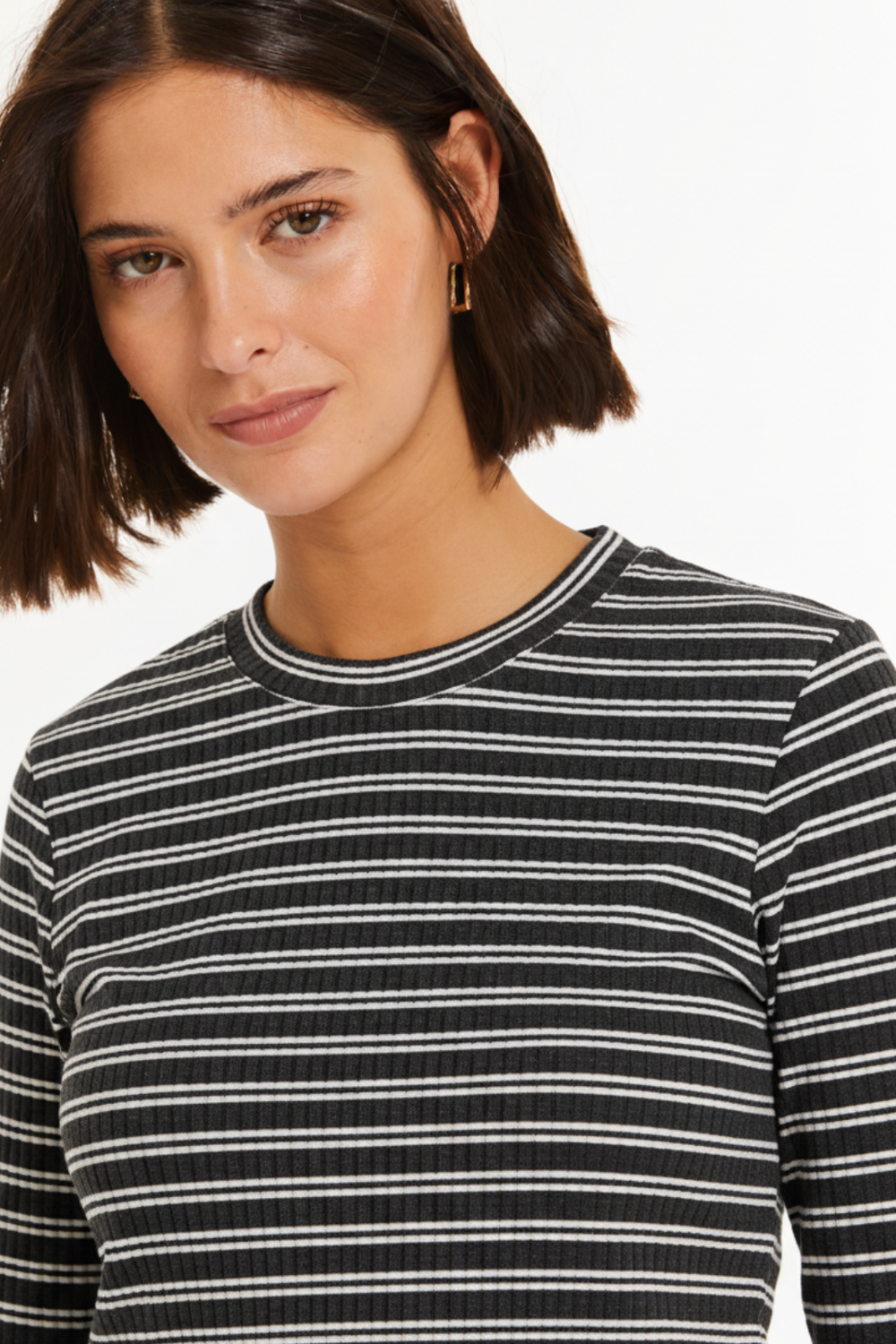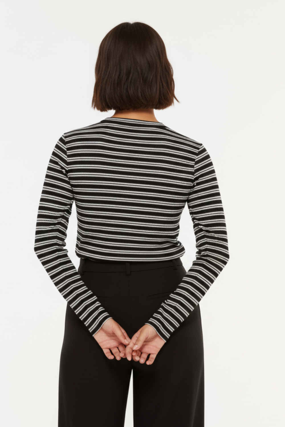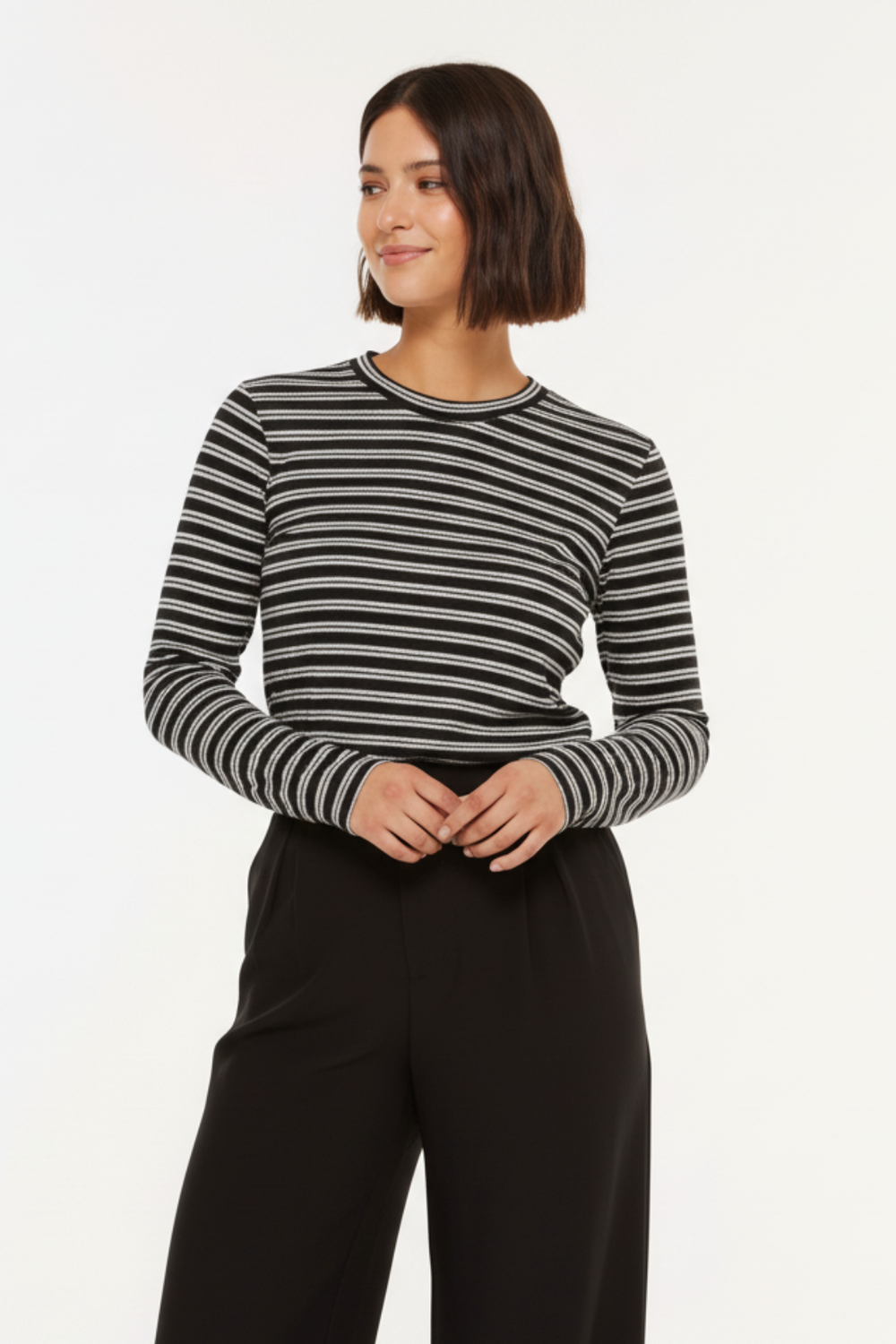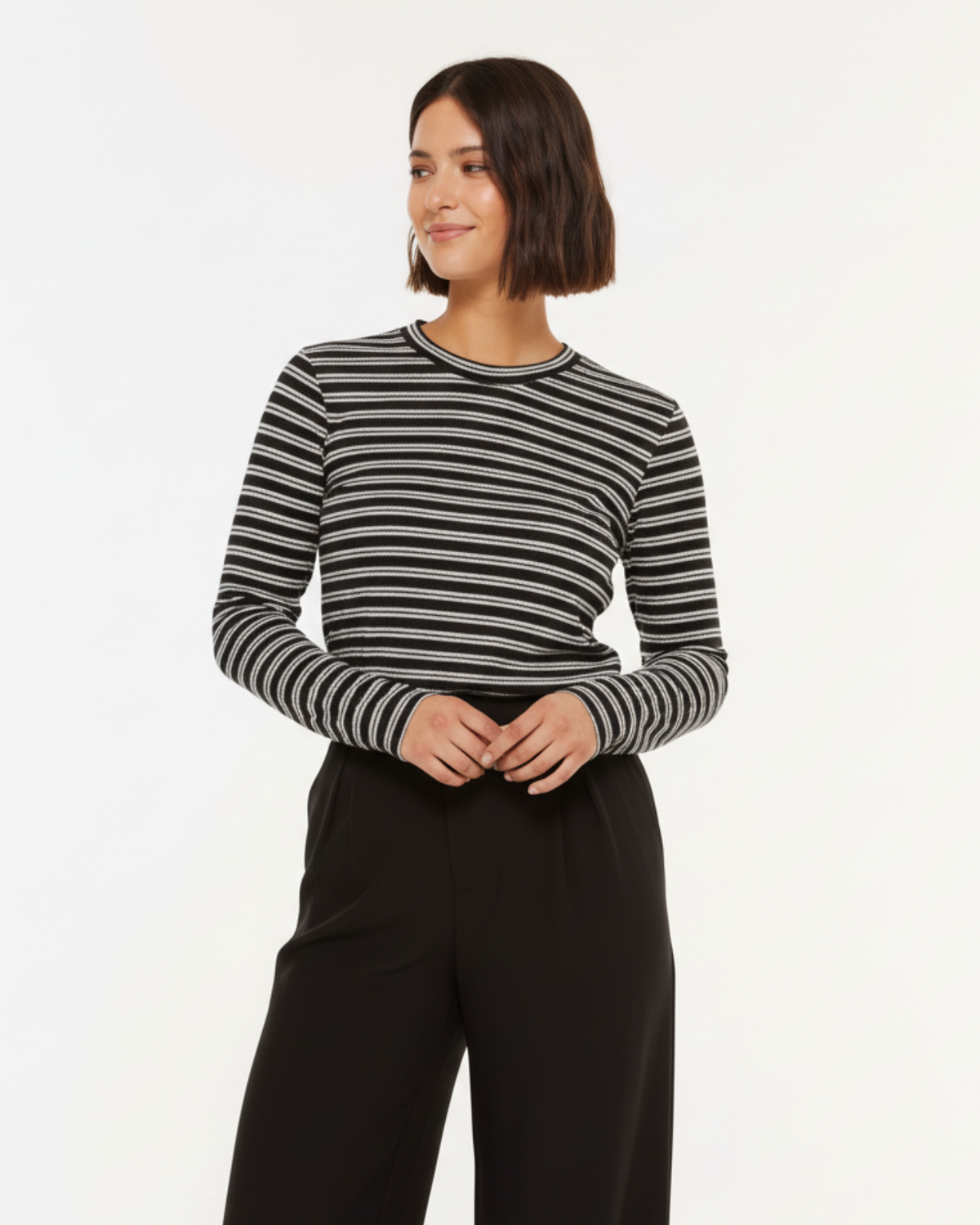 T-shirt ajouré pour femme, à col rond et manches longues.