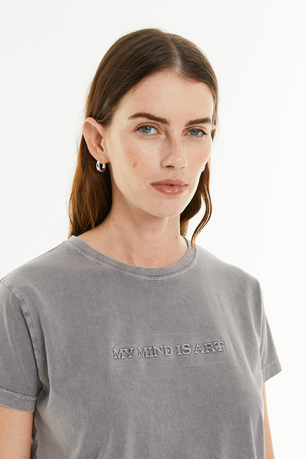 T-shirt à manches courtes pour femme avec détail en relief sur le devant.