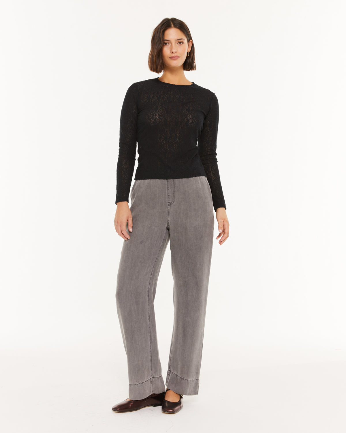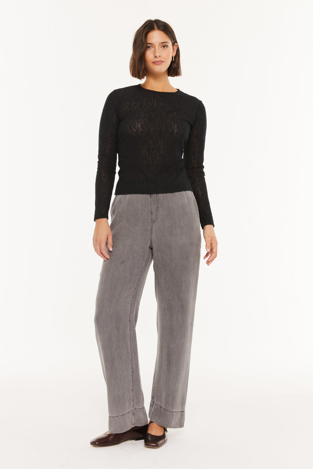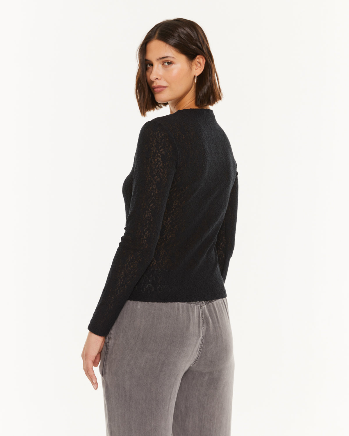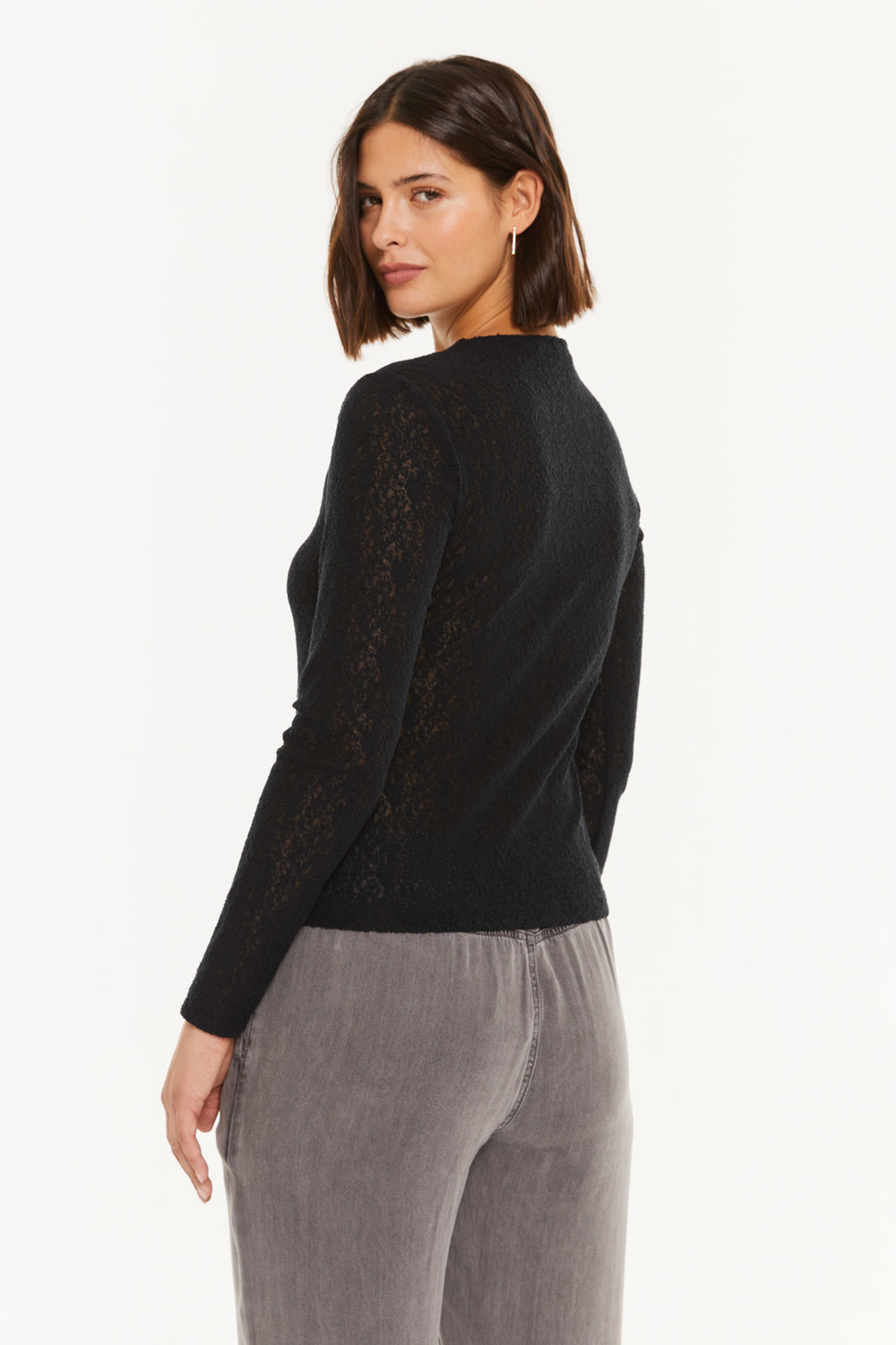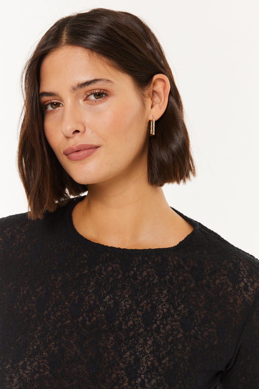 T-shirt ajouré pour femme, à col rond et manches longues.