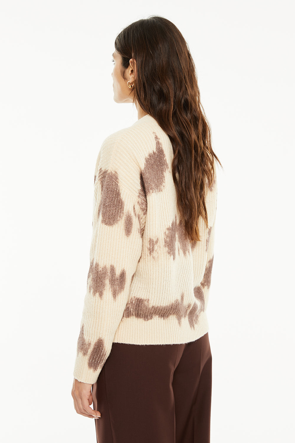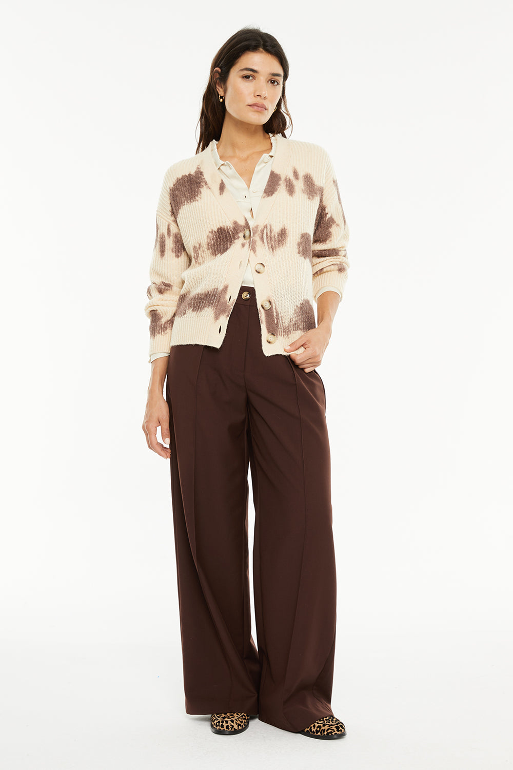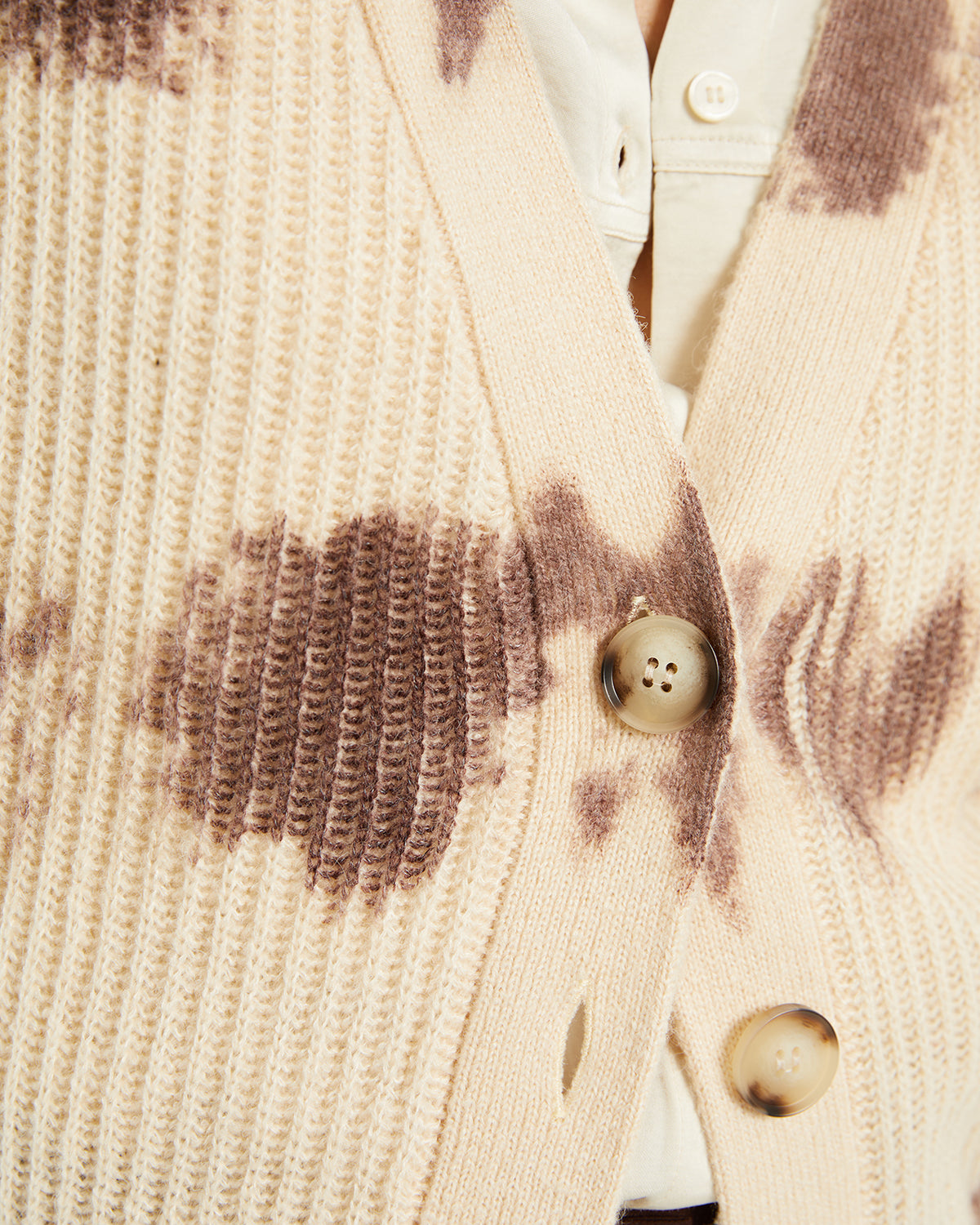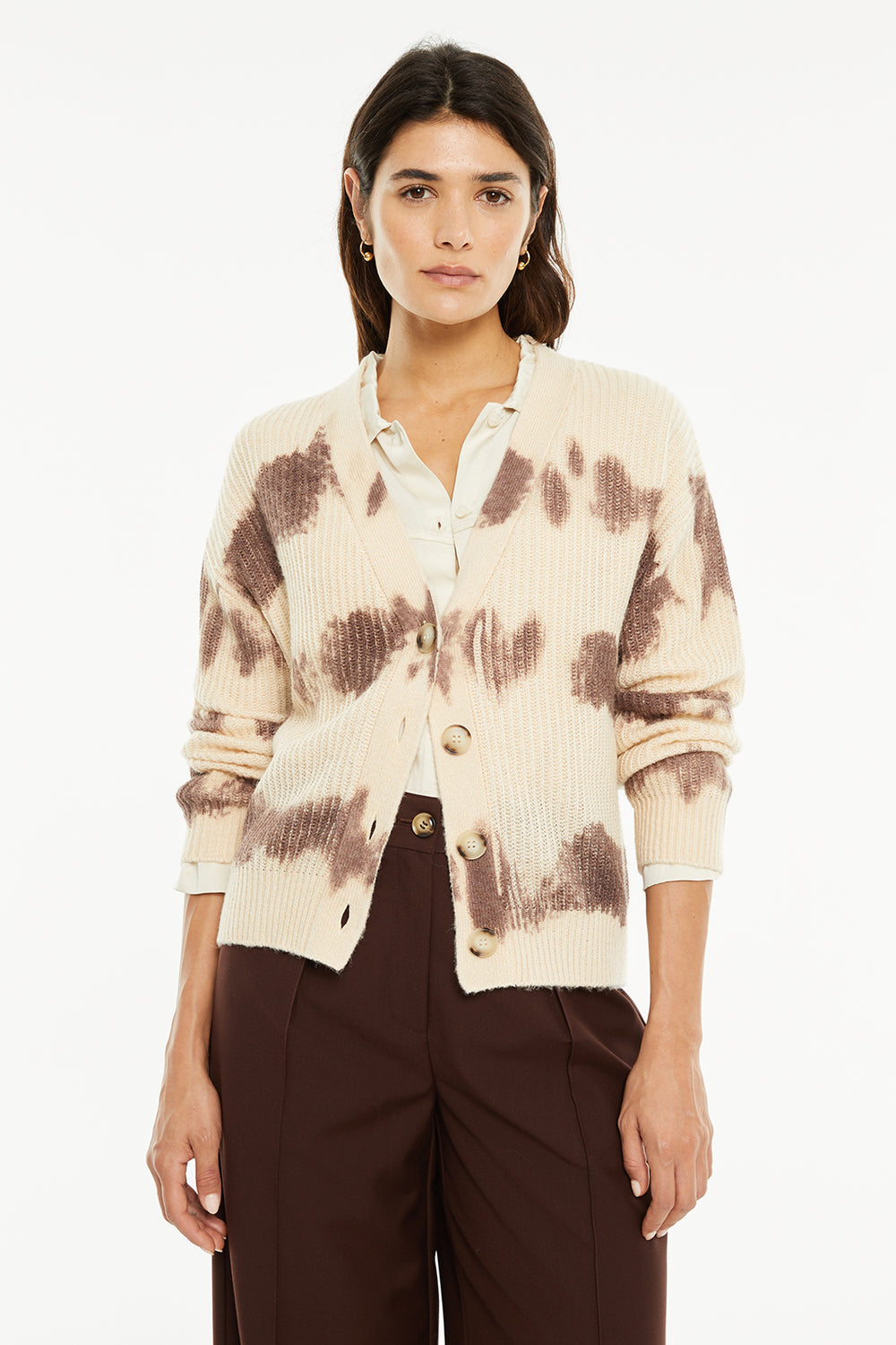 Gilet en maille imprimée, col en V et fermeture boutonnée.
