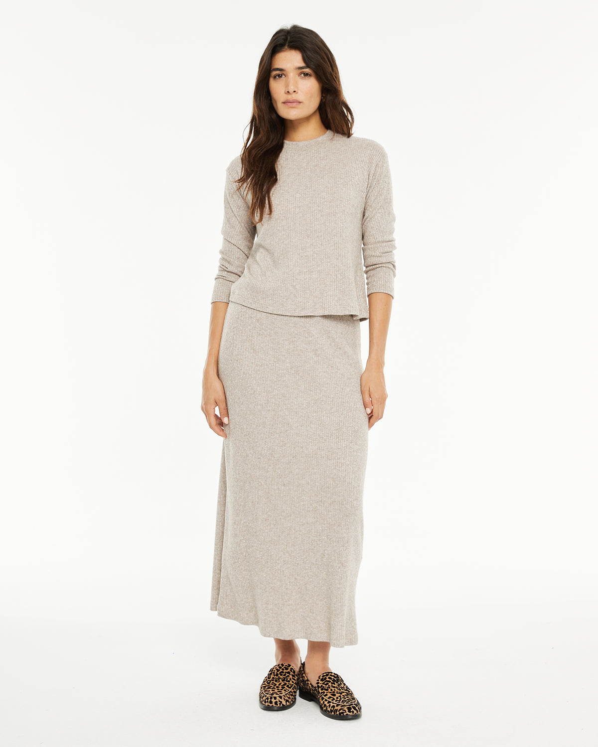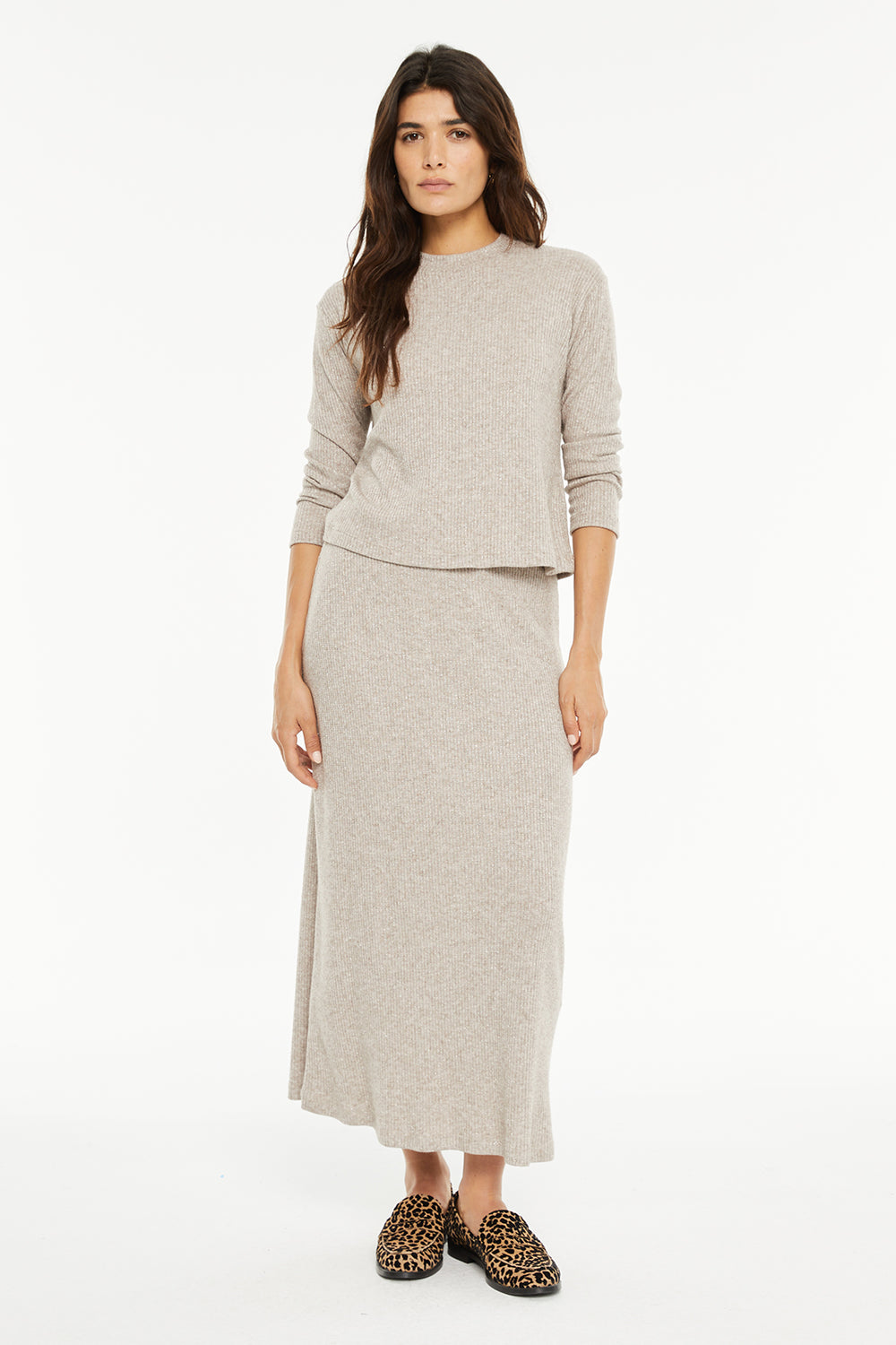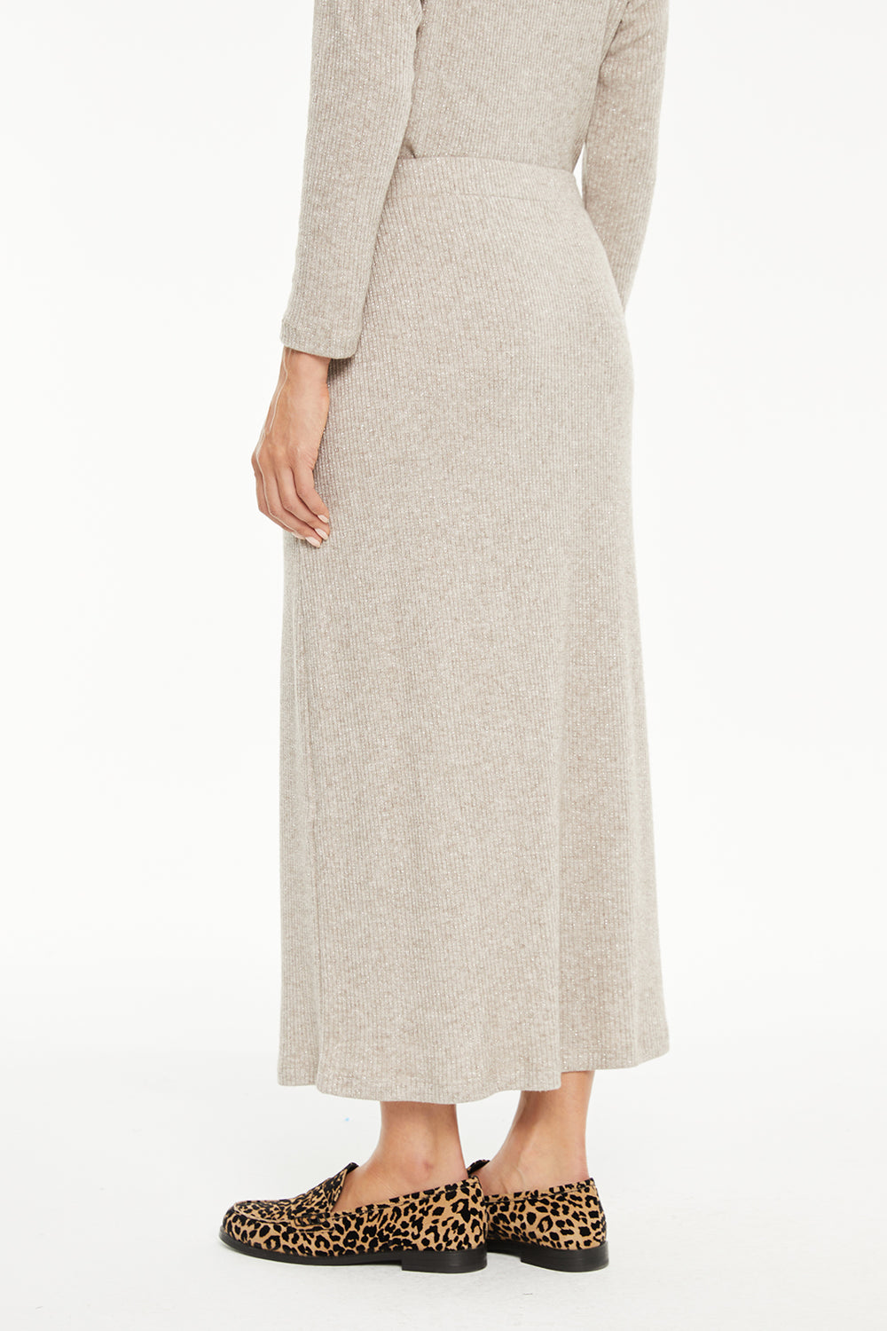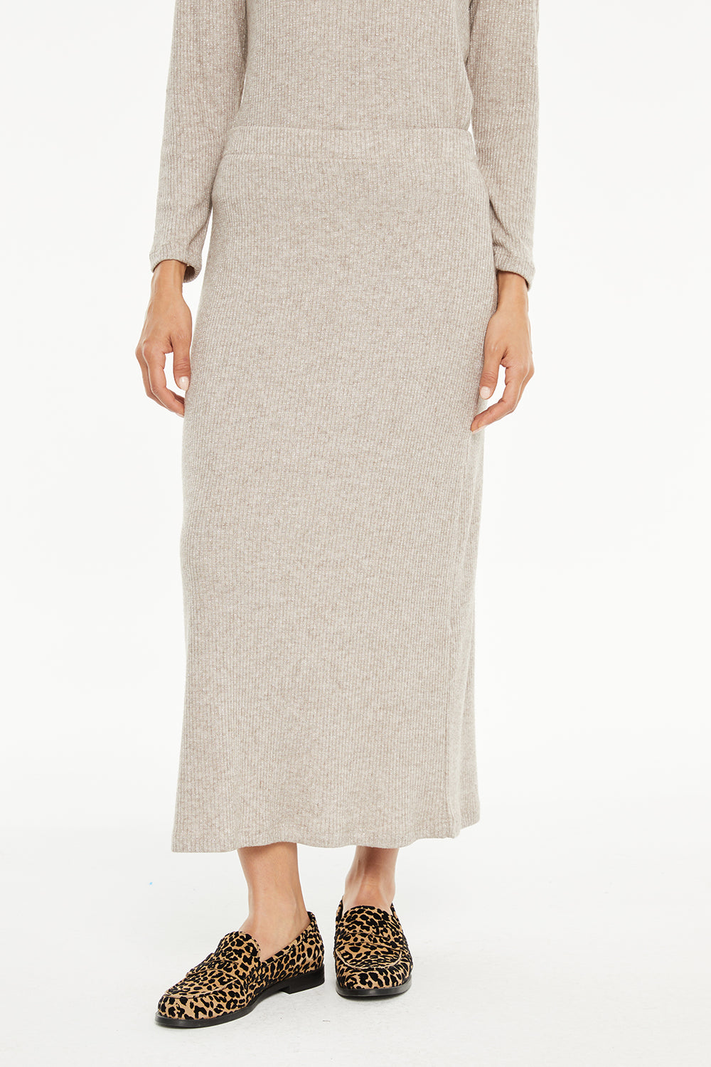 Jupe midi pour femme, avec taille élastique et tissu côtelé avec lurex.