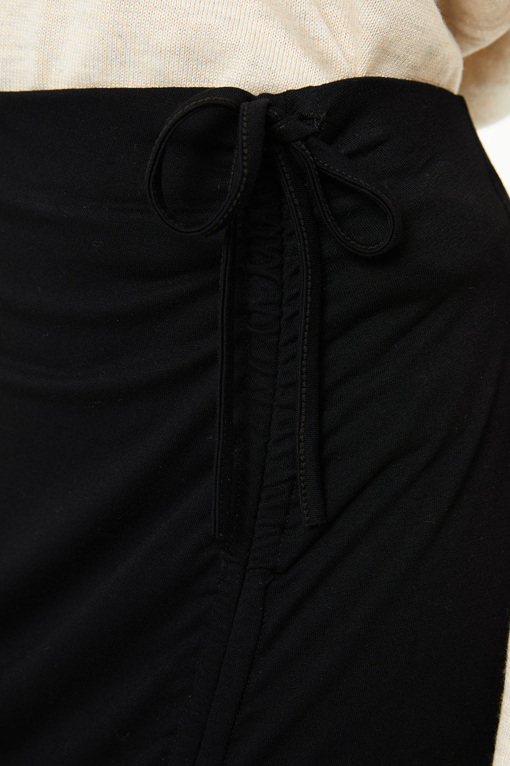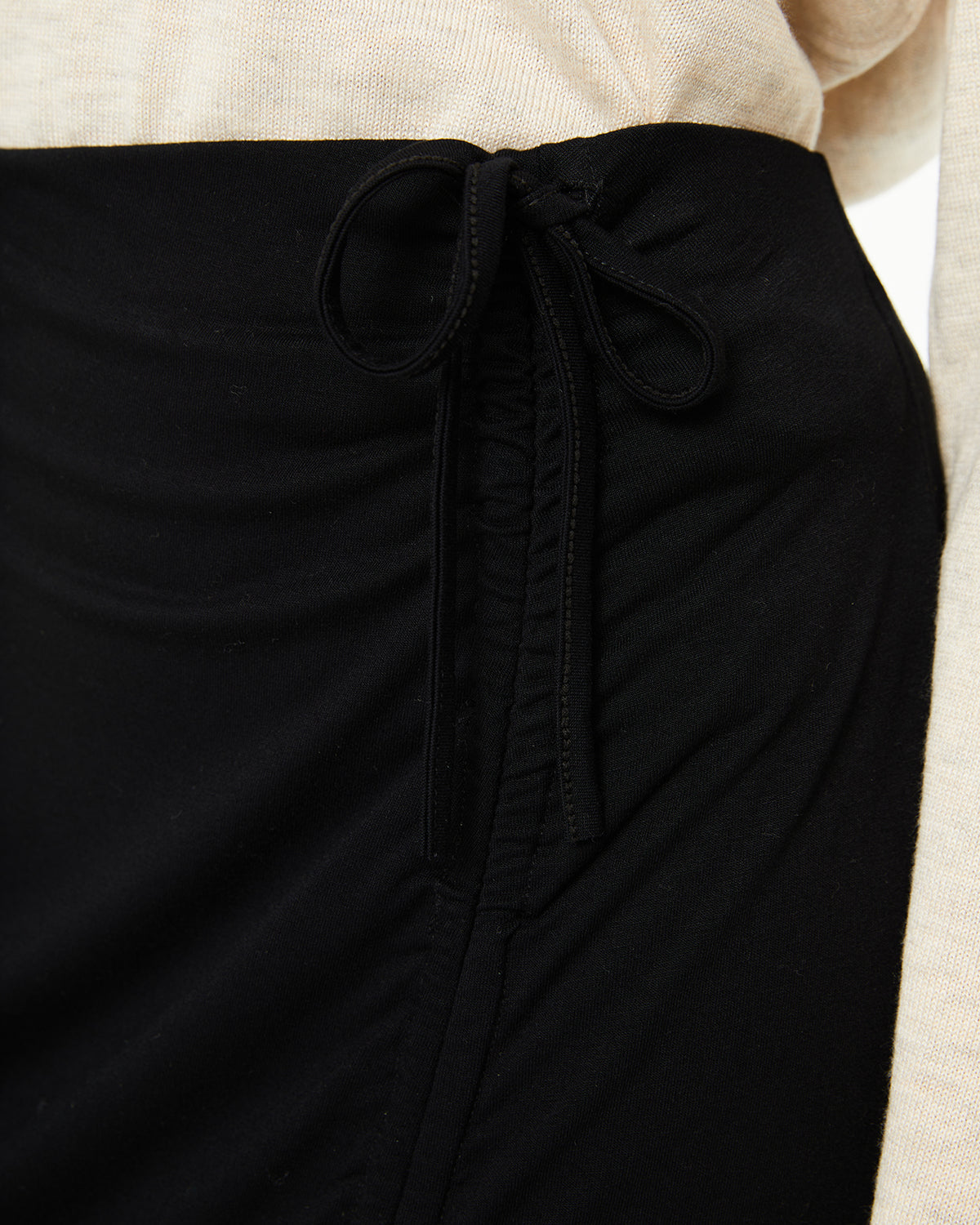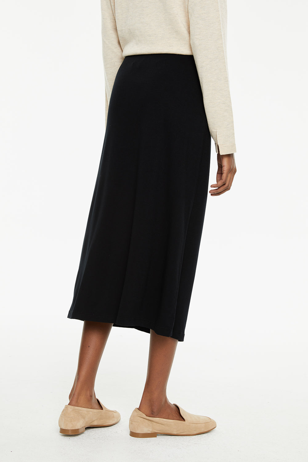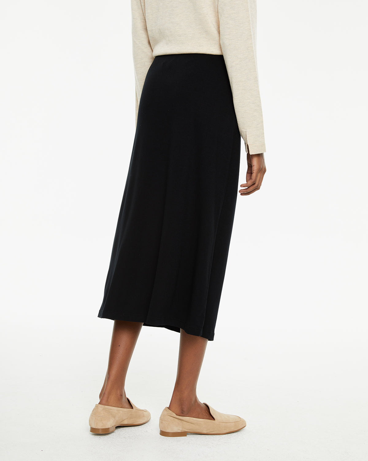 Jupe midi ajustée pour femme avec fente, taille élastique, ourlet évasé et fronces sur le côté. Vêtement durable.