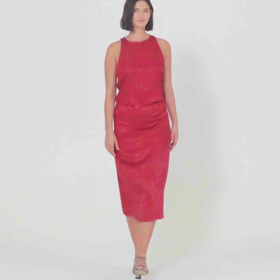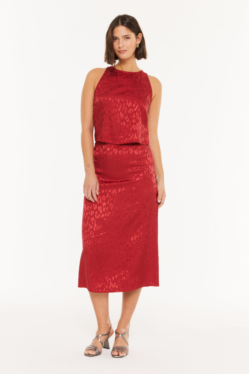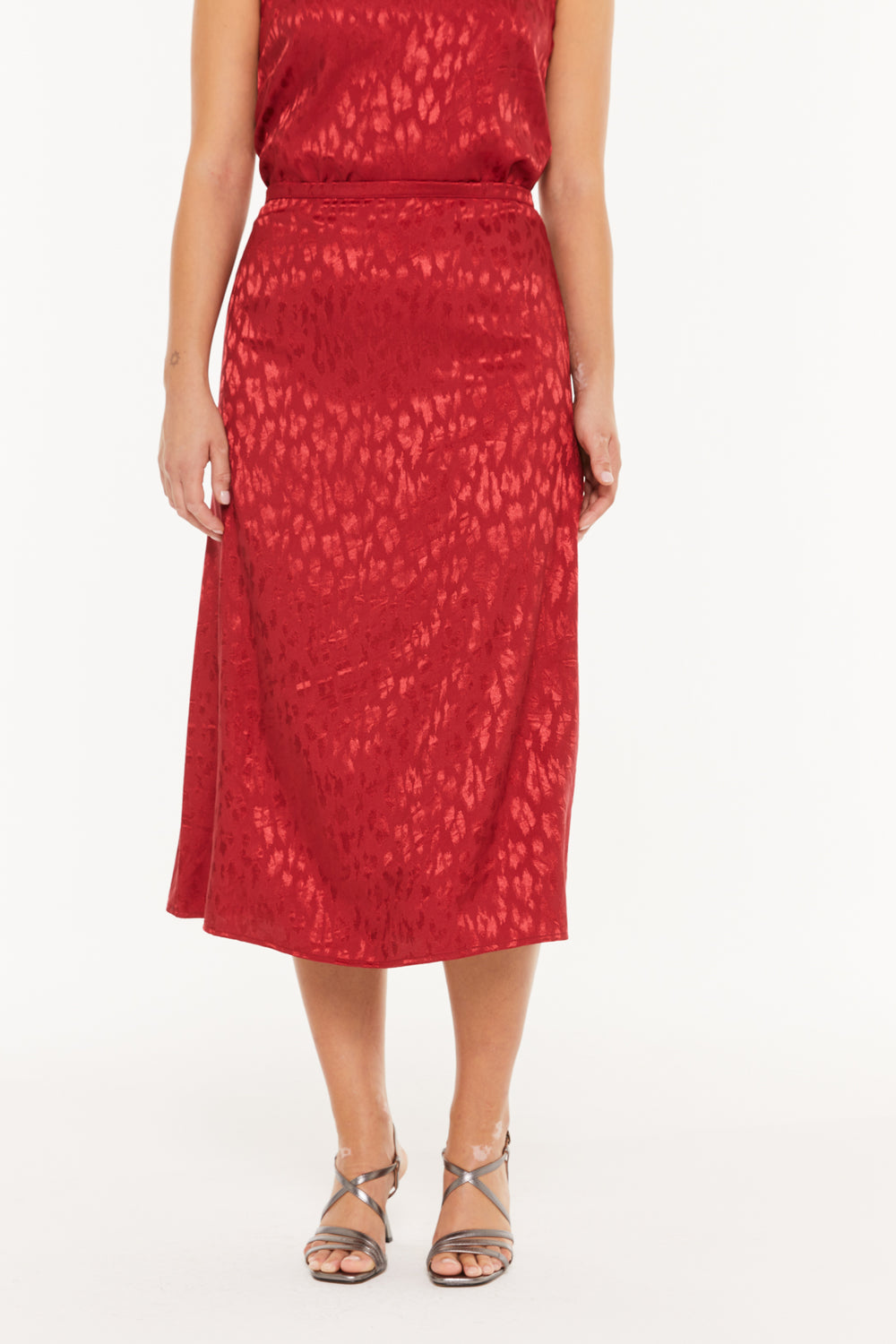 Jupe midi pour femme, en tissu jacquard avec fermeture éclair sur le côté.