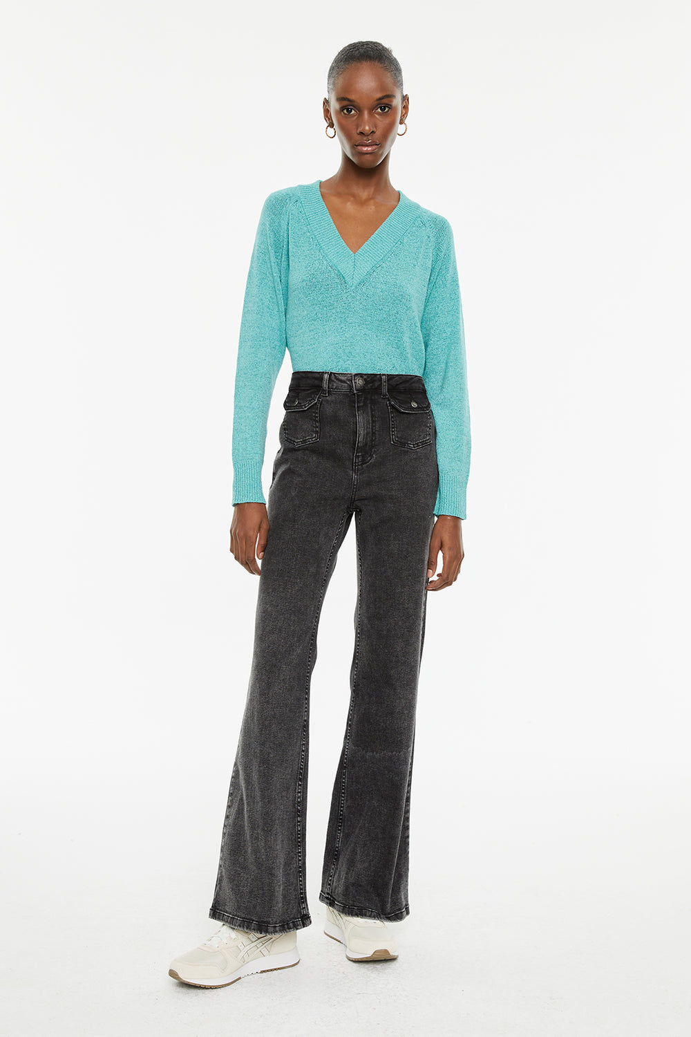 Jean coupe évasée avec détail taille mi-haute et poches avant