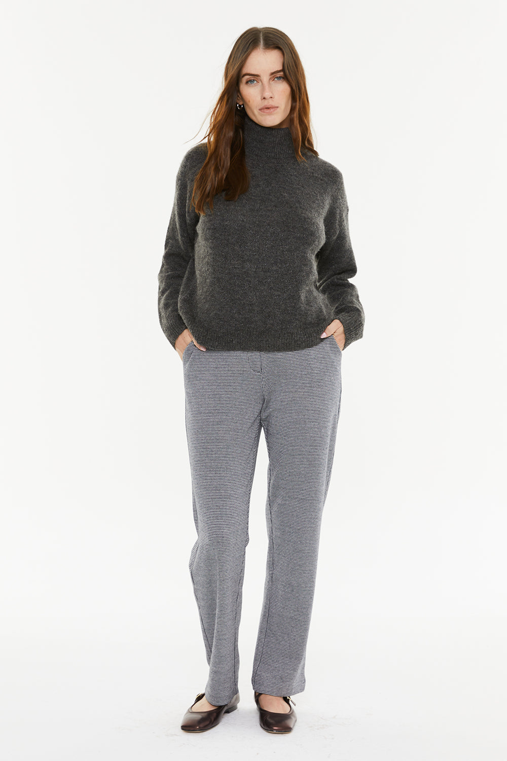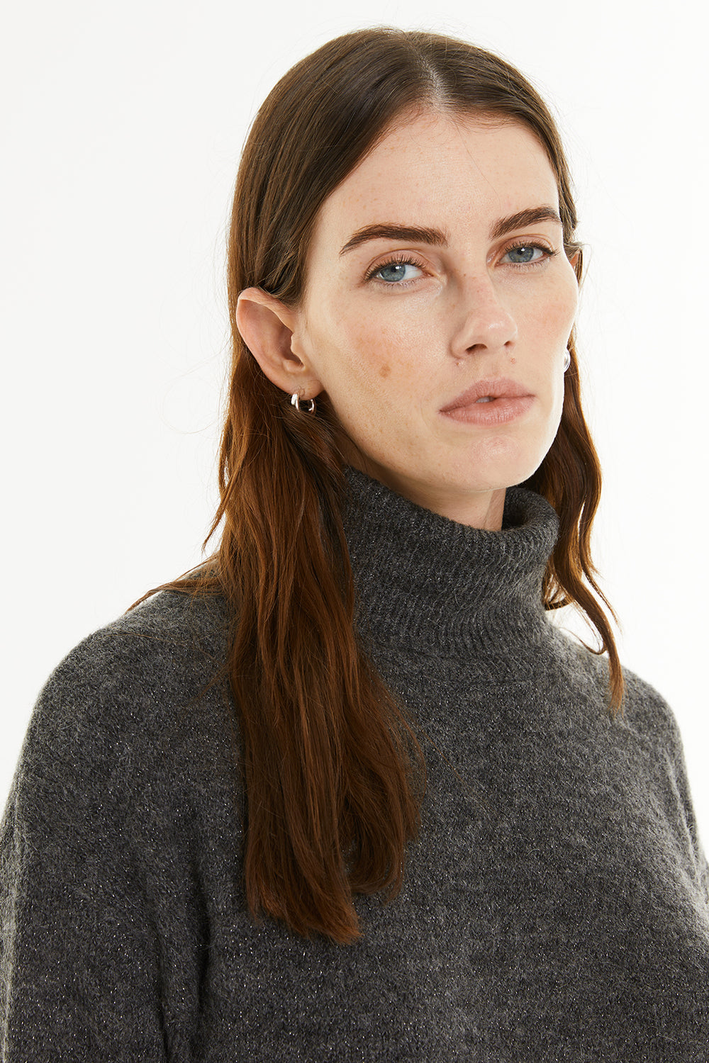 Pull pour femme, col montant avec lurex.