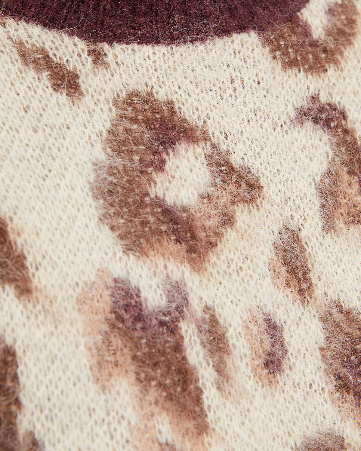 Pull femme en jacquard imprimé animal, col rond et finitions côtelées. Vêtement écoresponsable.
