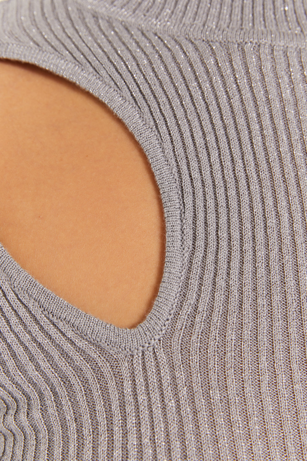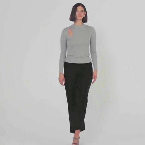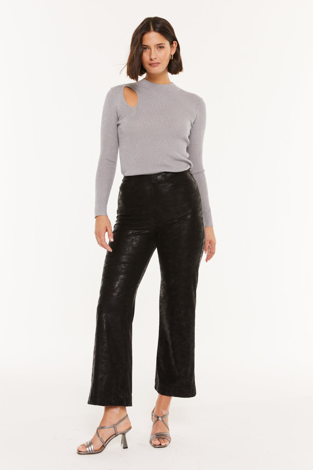 Pull pour femme en lurex, manches longues, col Perkins et découpe sur le devant.