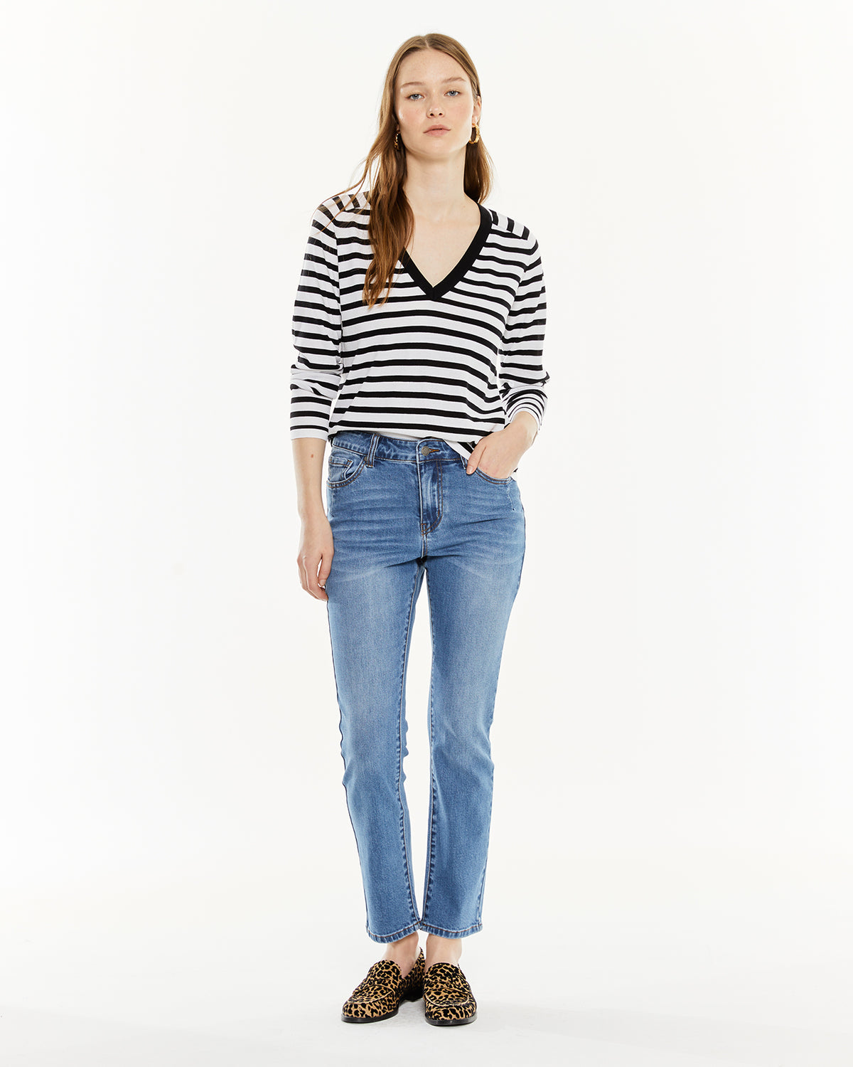Le mannequin mesure 1,74 m et porte une taille 38/M.