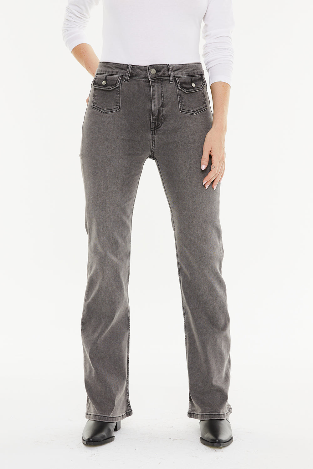 Pantalon évasé avec détail de poche plaquée sur le devant.
