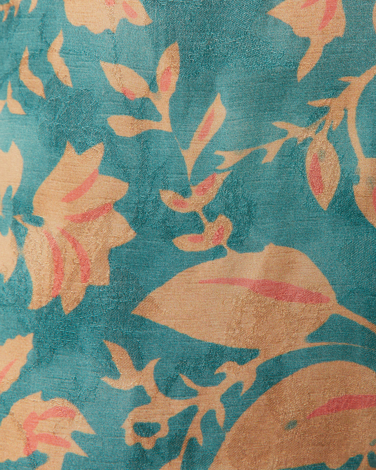 Pantalón tipo capri con pinzas delanteras y estampado floral. Cierre con cremallera lateral. Prenda sostenible.