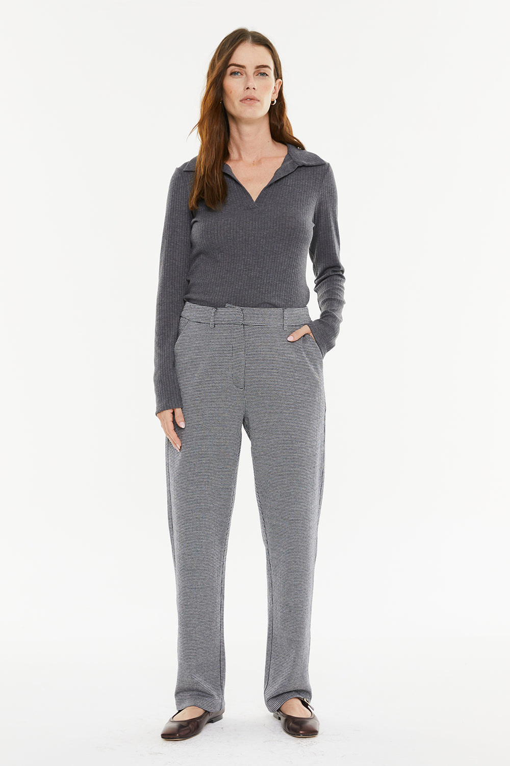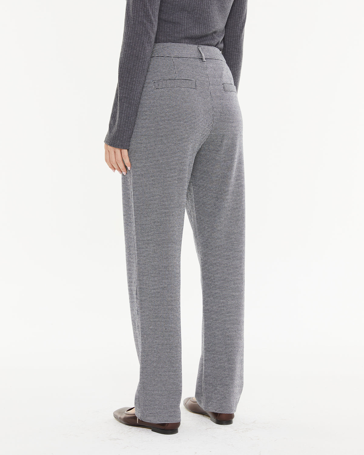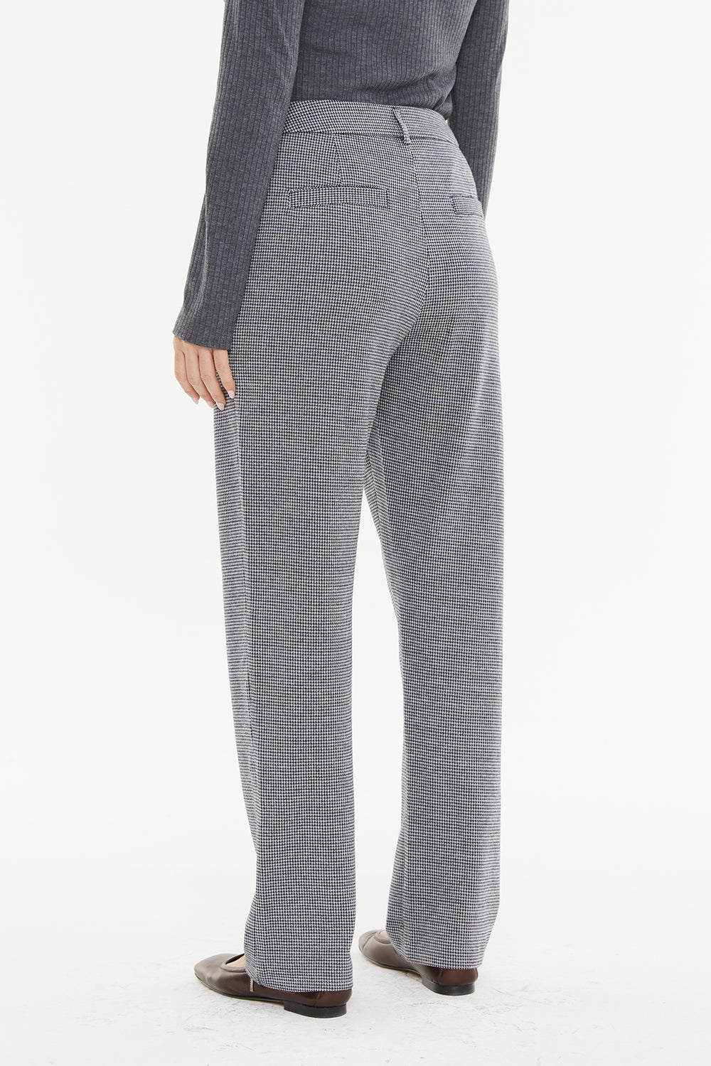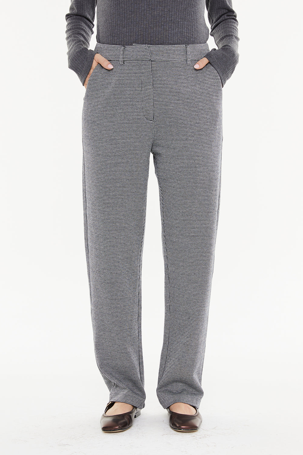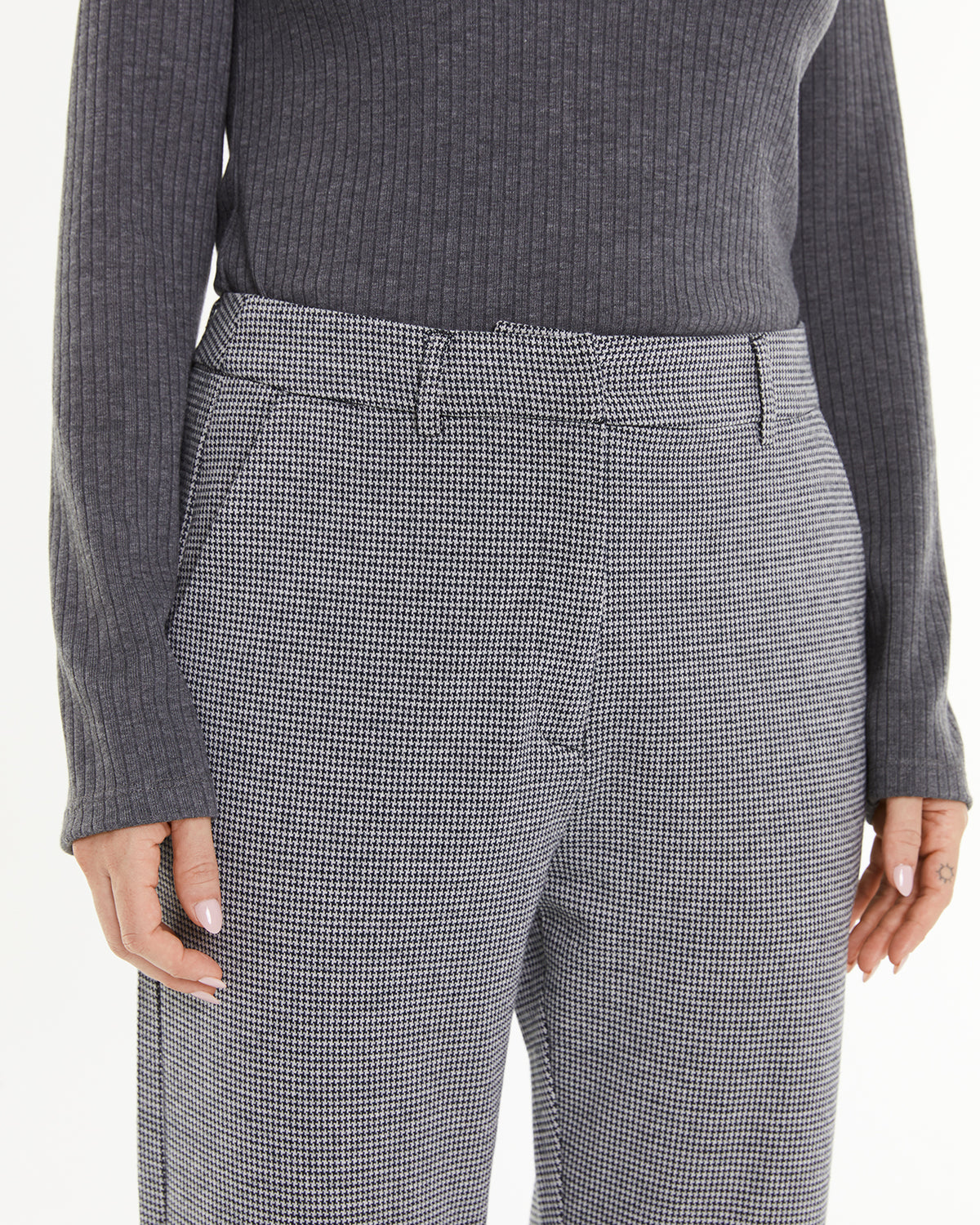 Pantalon pour femme à motif jacquard géométrique. Fermeture boutonnée.