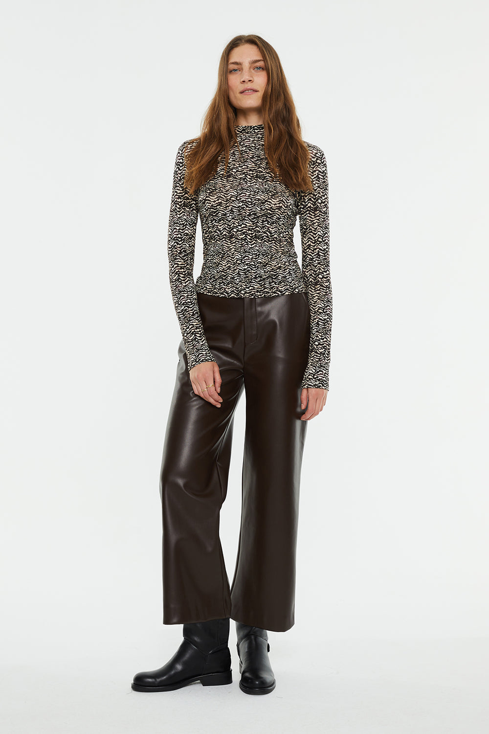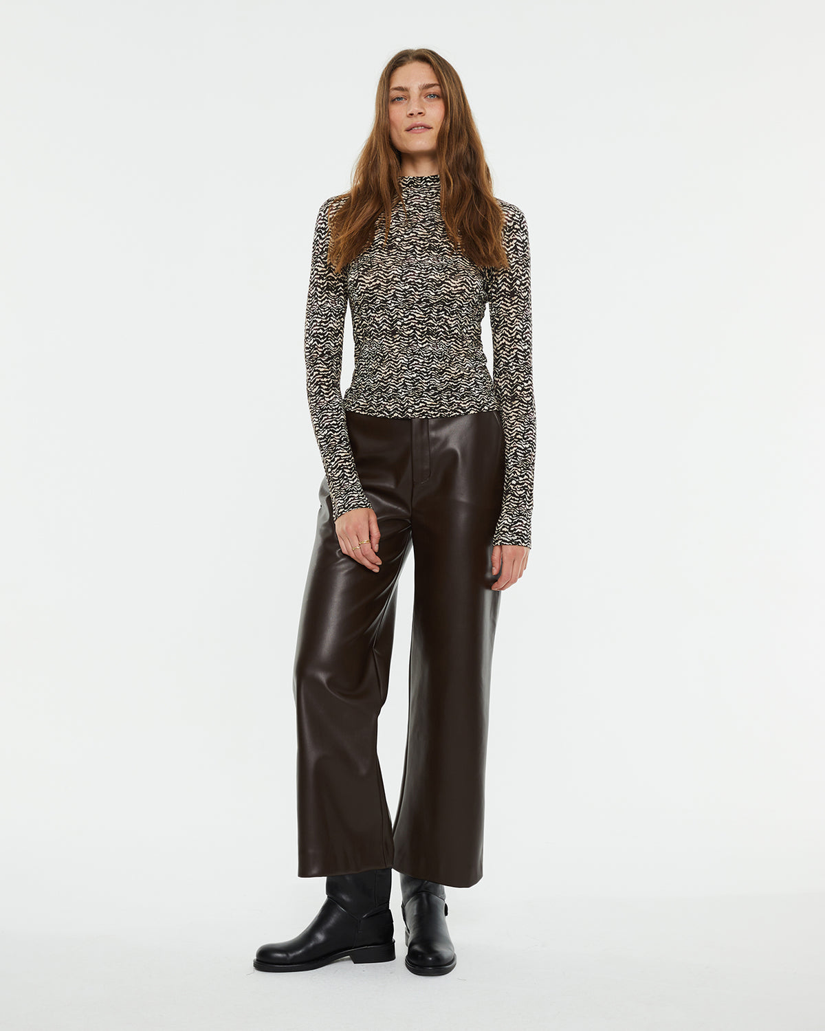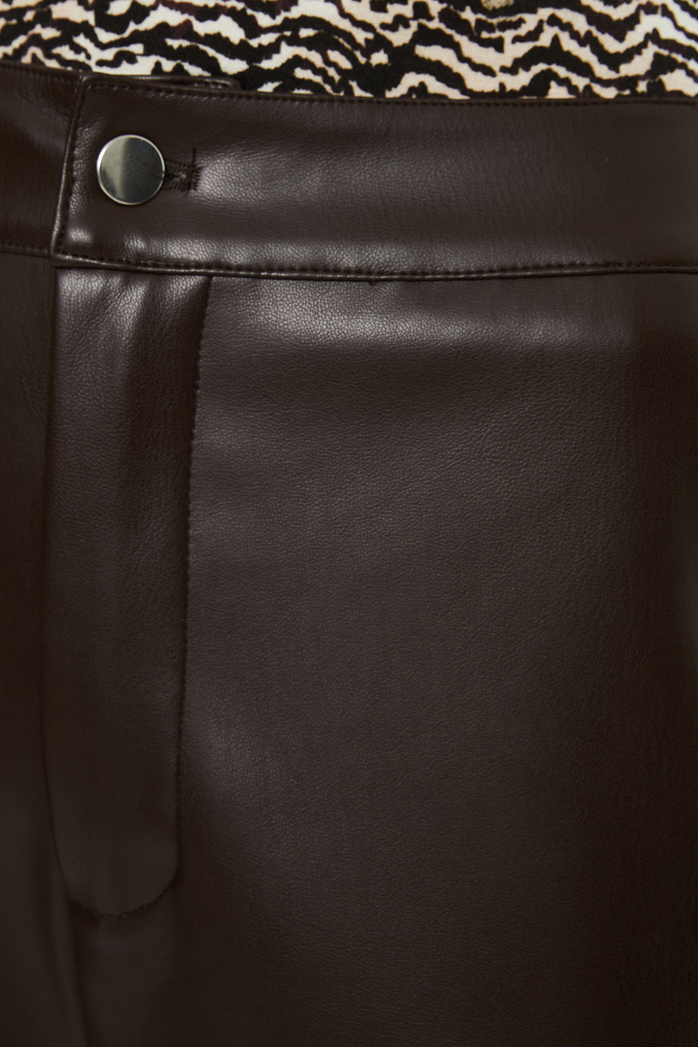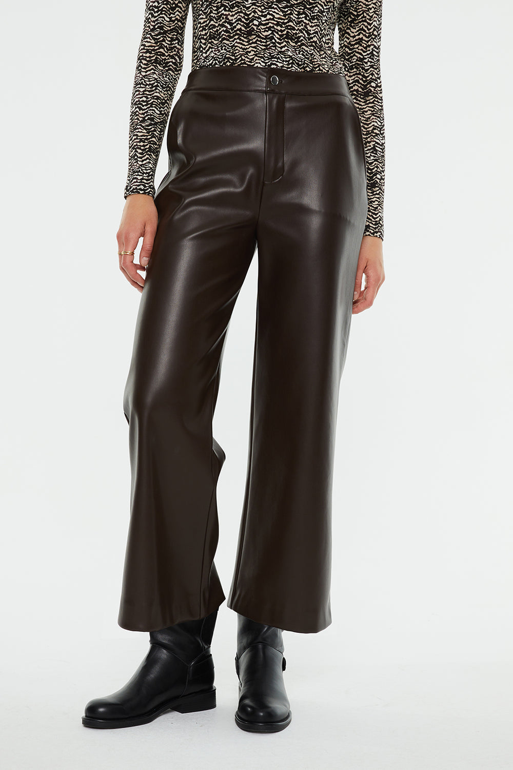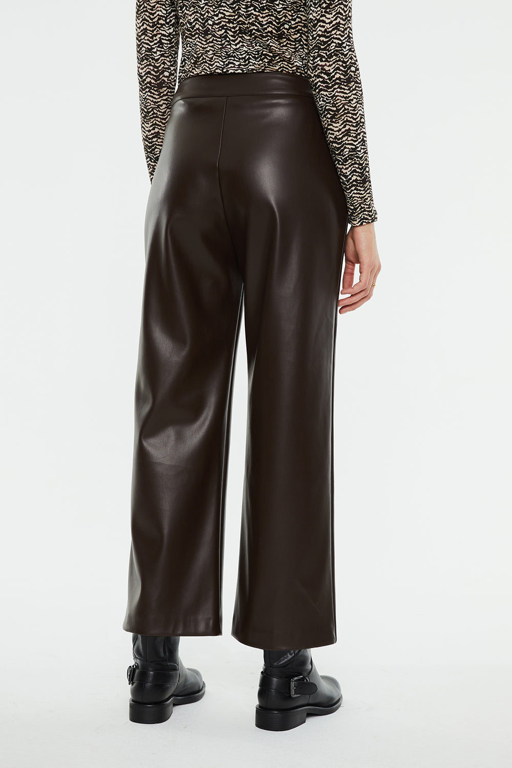 Pantalon droit effet cuir pour femme avec poches avant et taille élastique.
