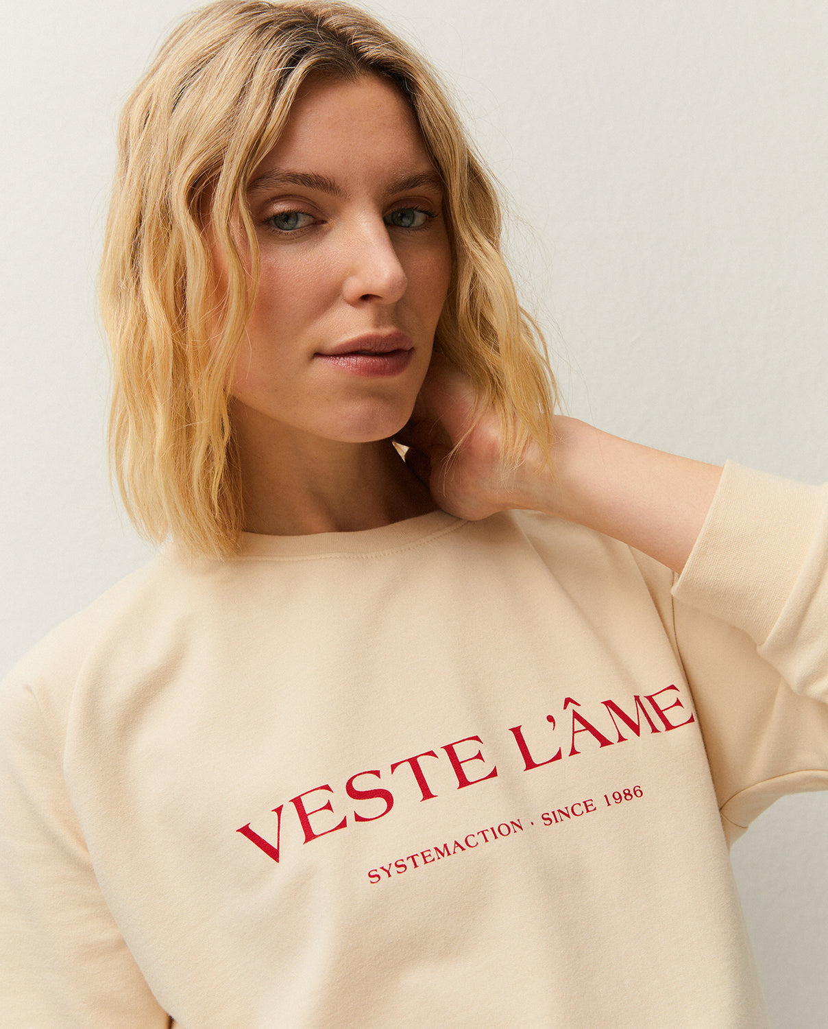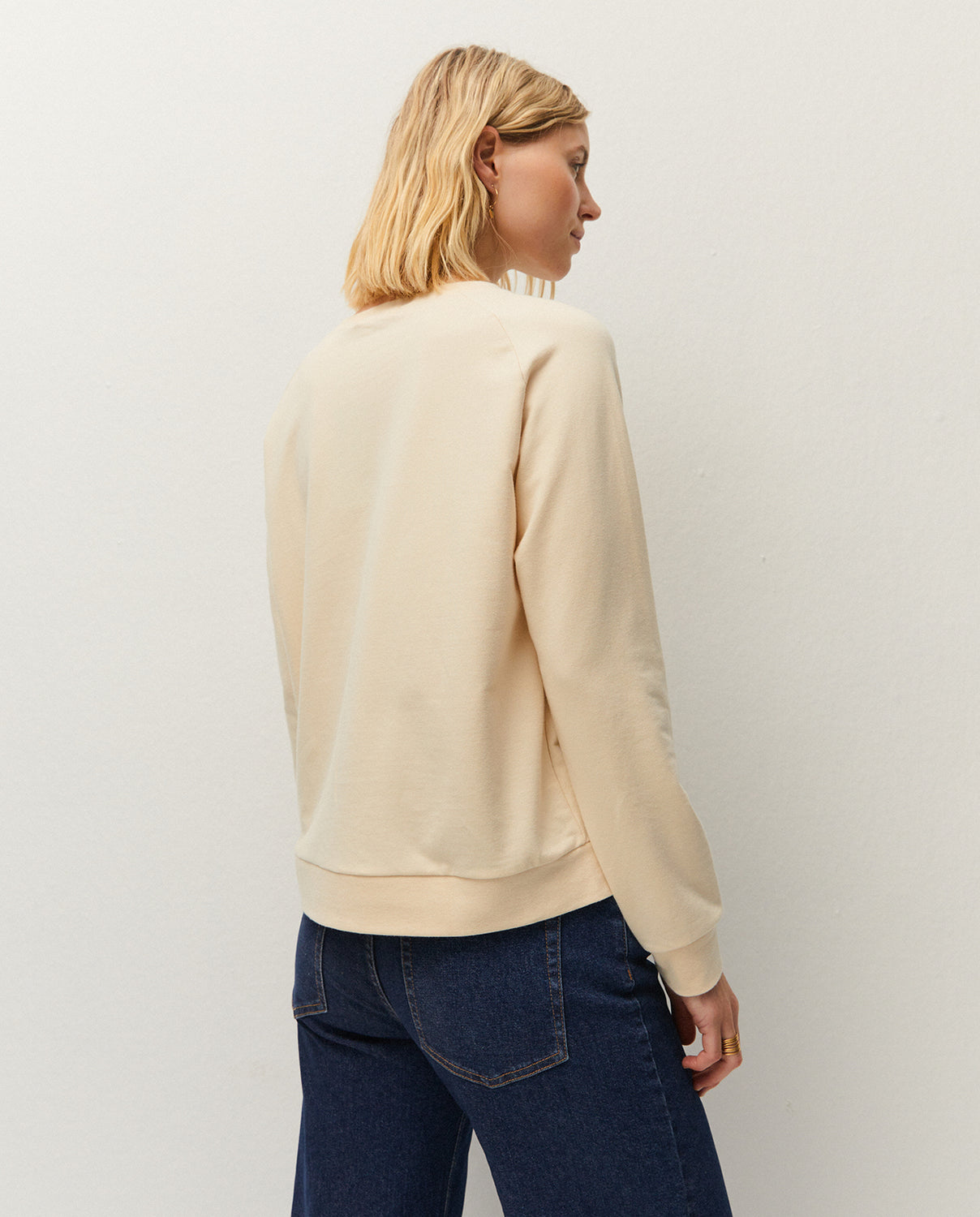 Sudadera de cuello redondo y manga larga acabada en puño. Detalle de texto estampado en el delantero a contraste. Prenda sostenible.