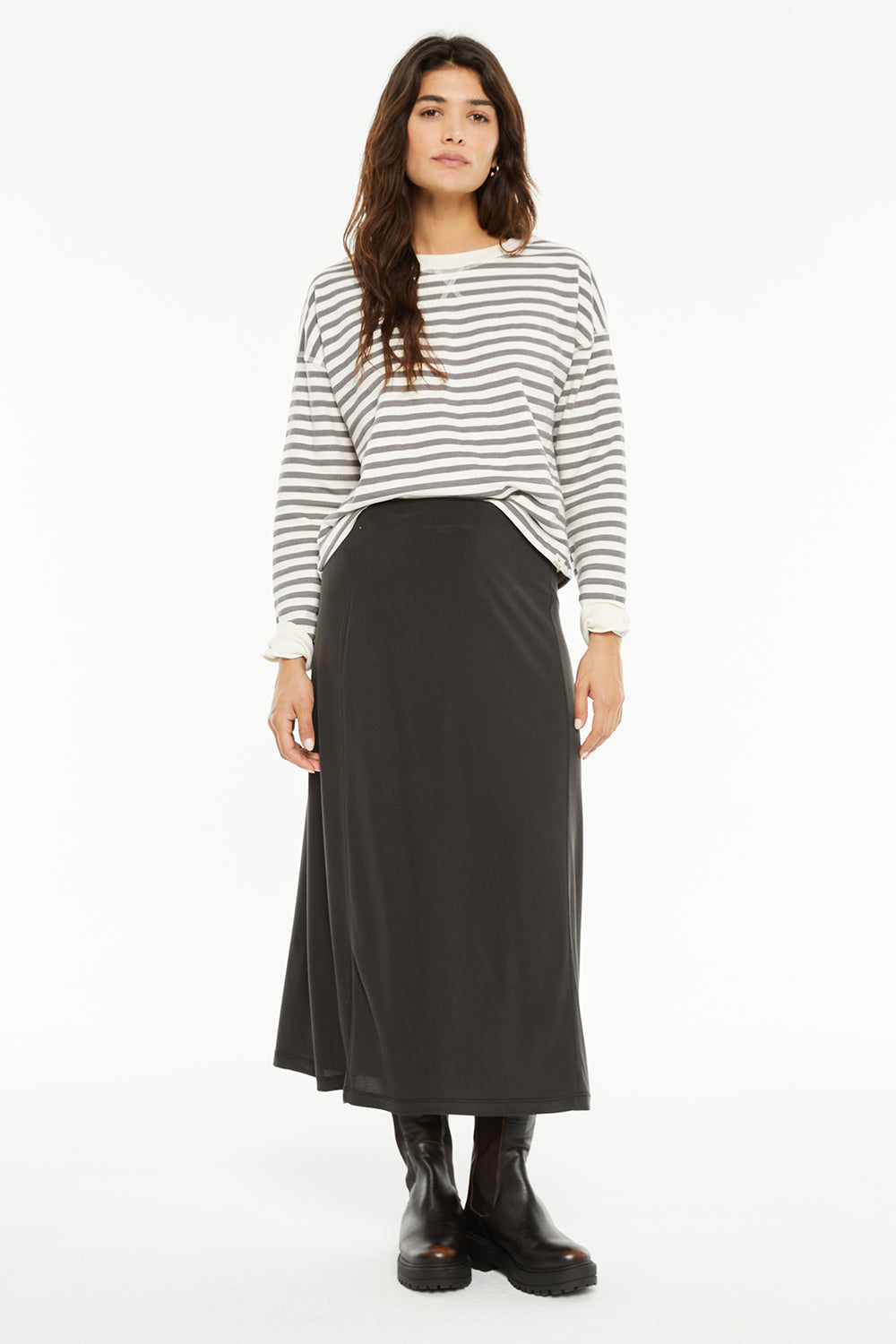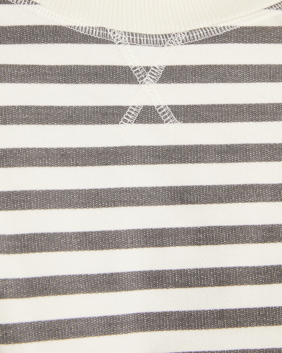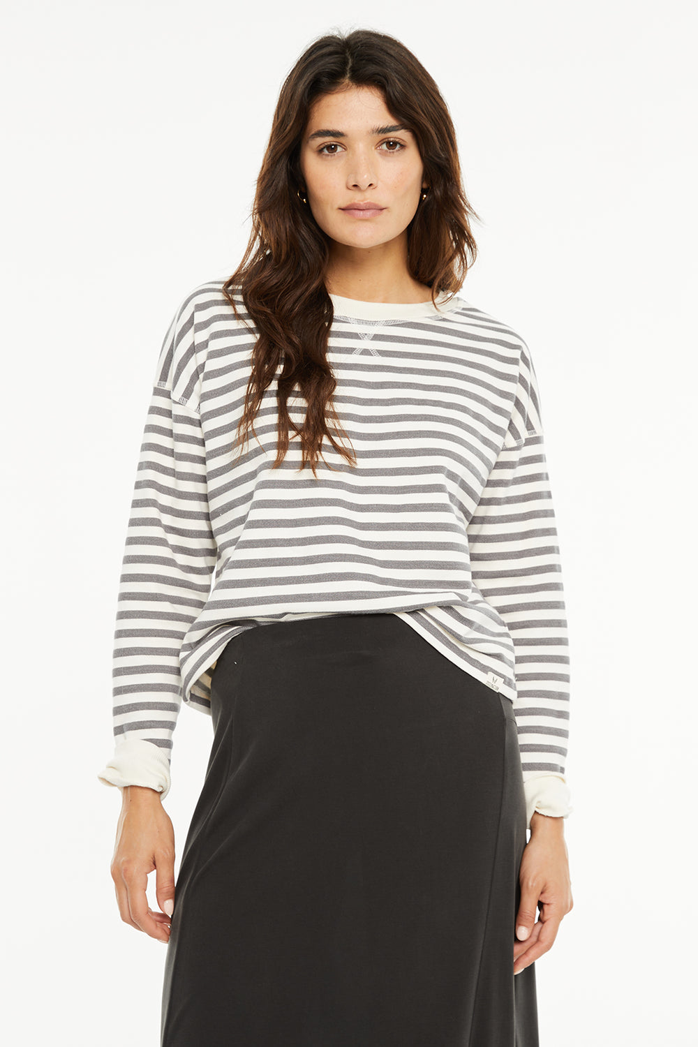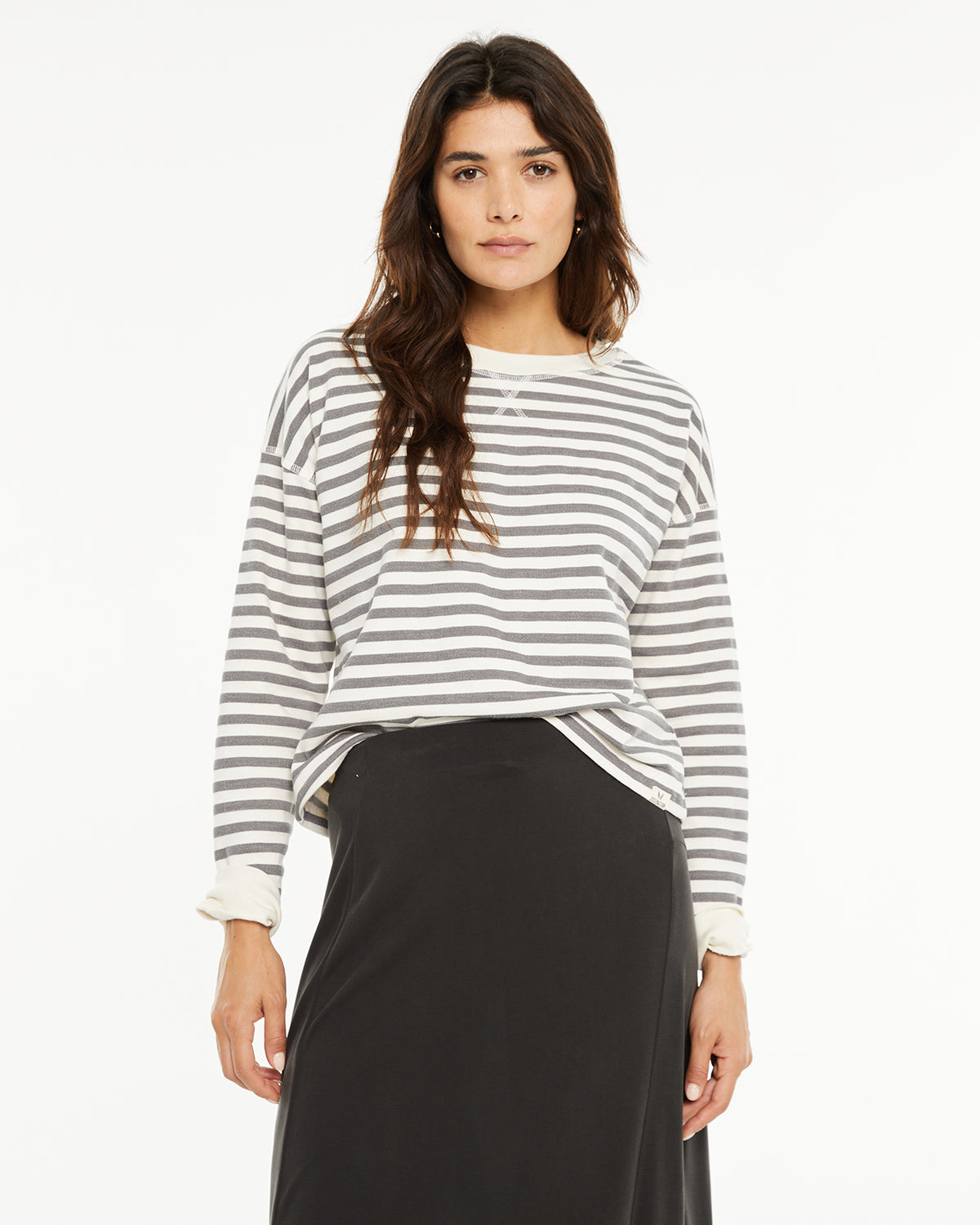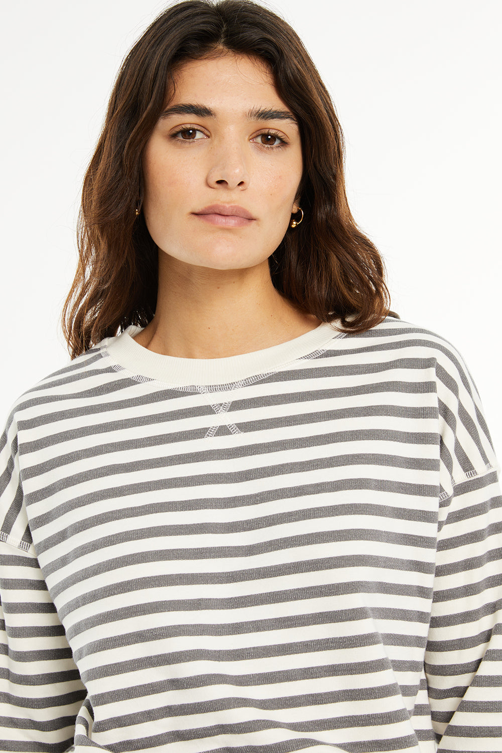 Sweat-shirt rayé pour femme avec col rond et manches longues.