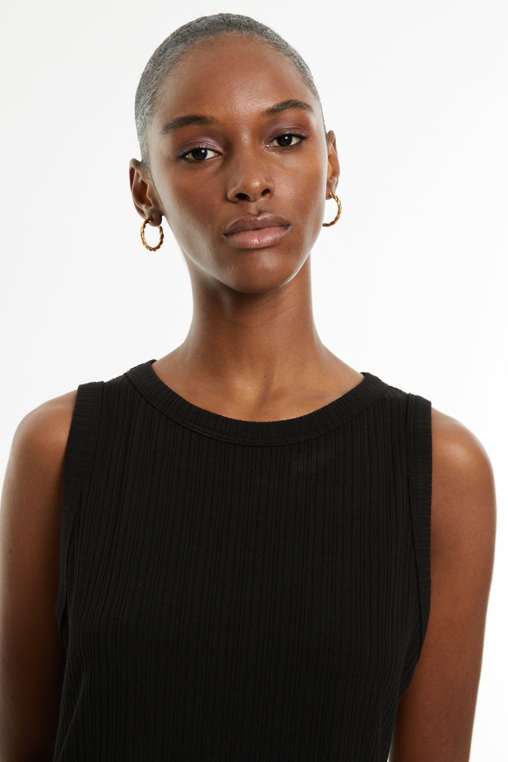 Haut ajusté pour femme avec un décolleté licou sans manches.