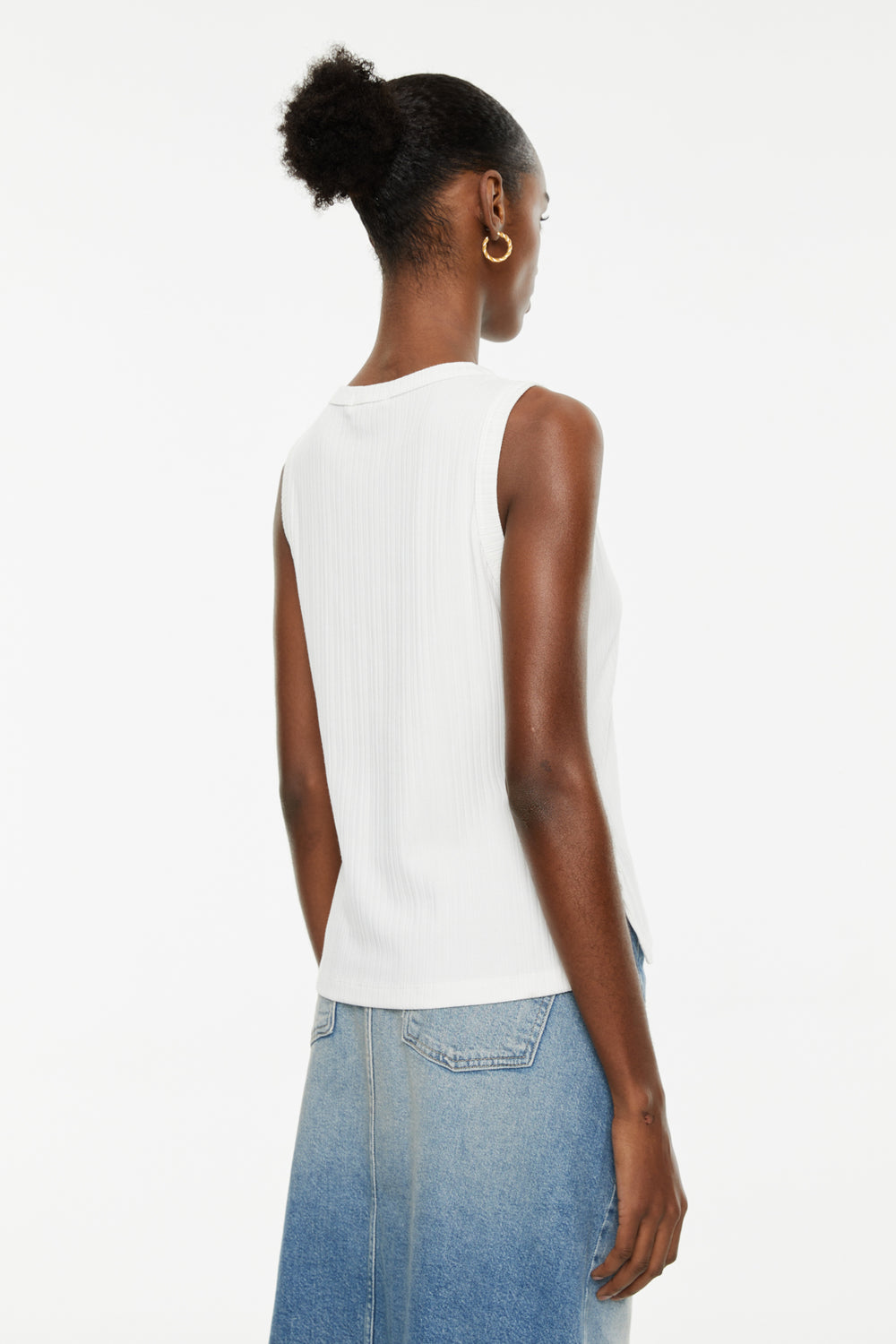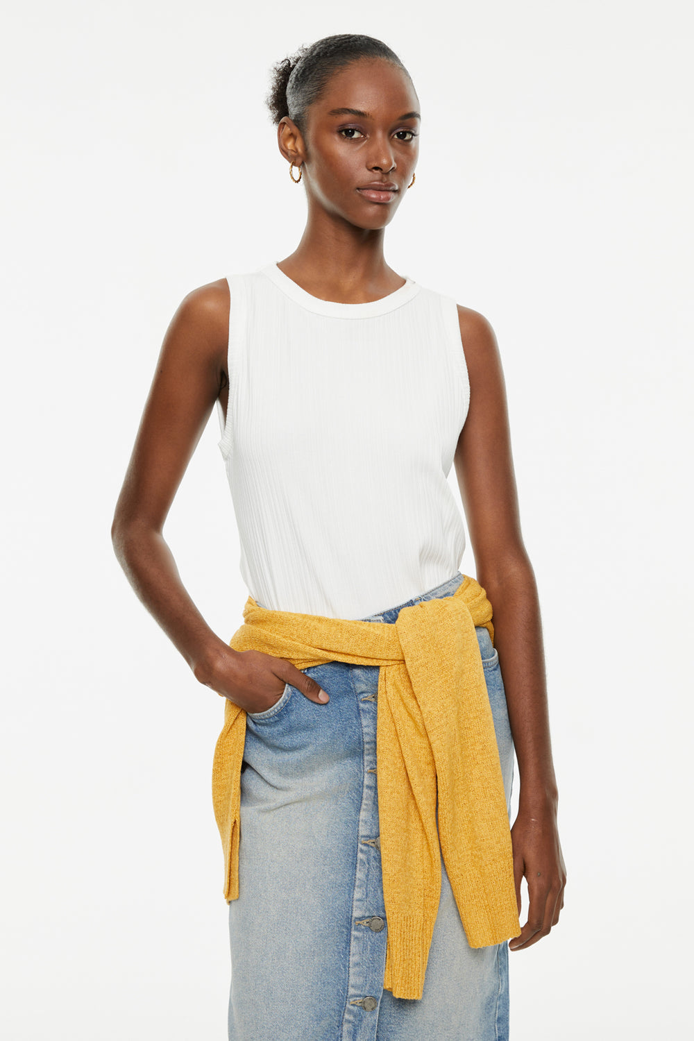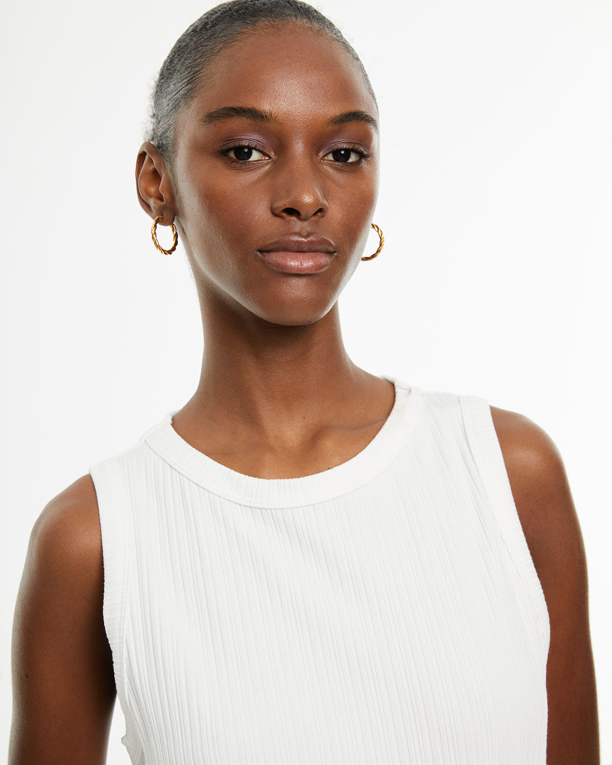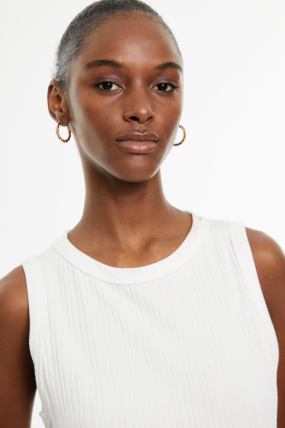 Haut ajusté pour femme avec un décolleté licou sans manches.