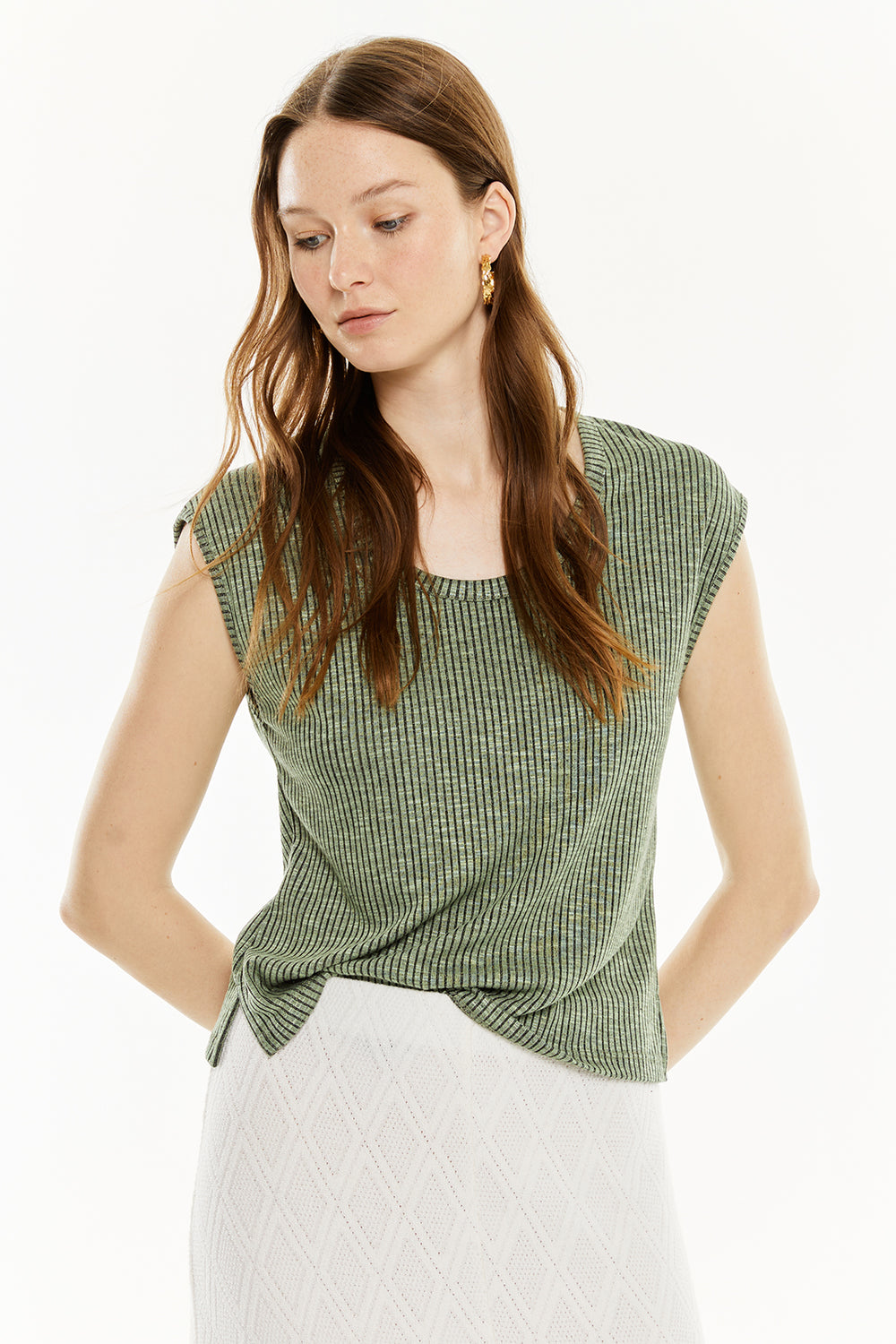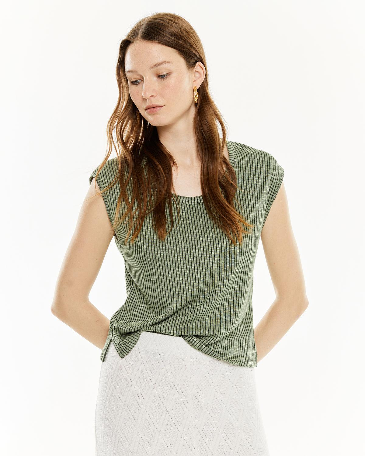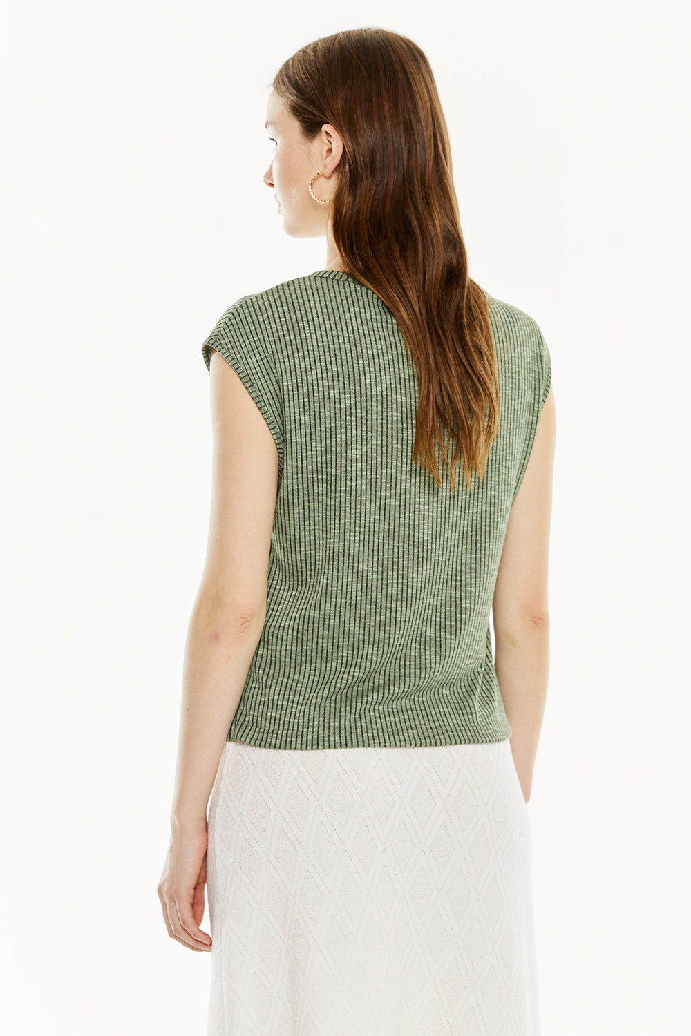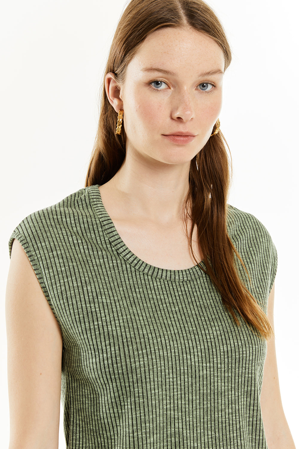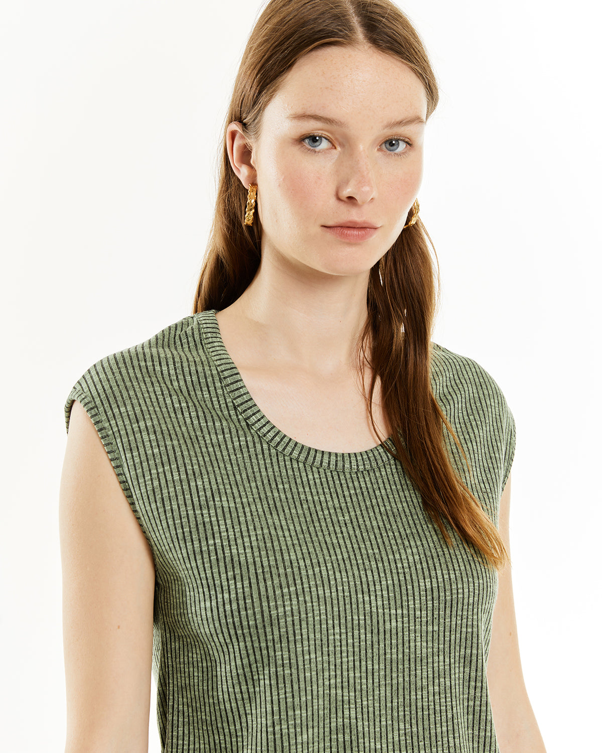 Haut côtelé sans manches pour femme. Vêtement durable.