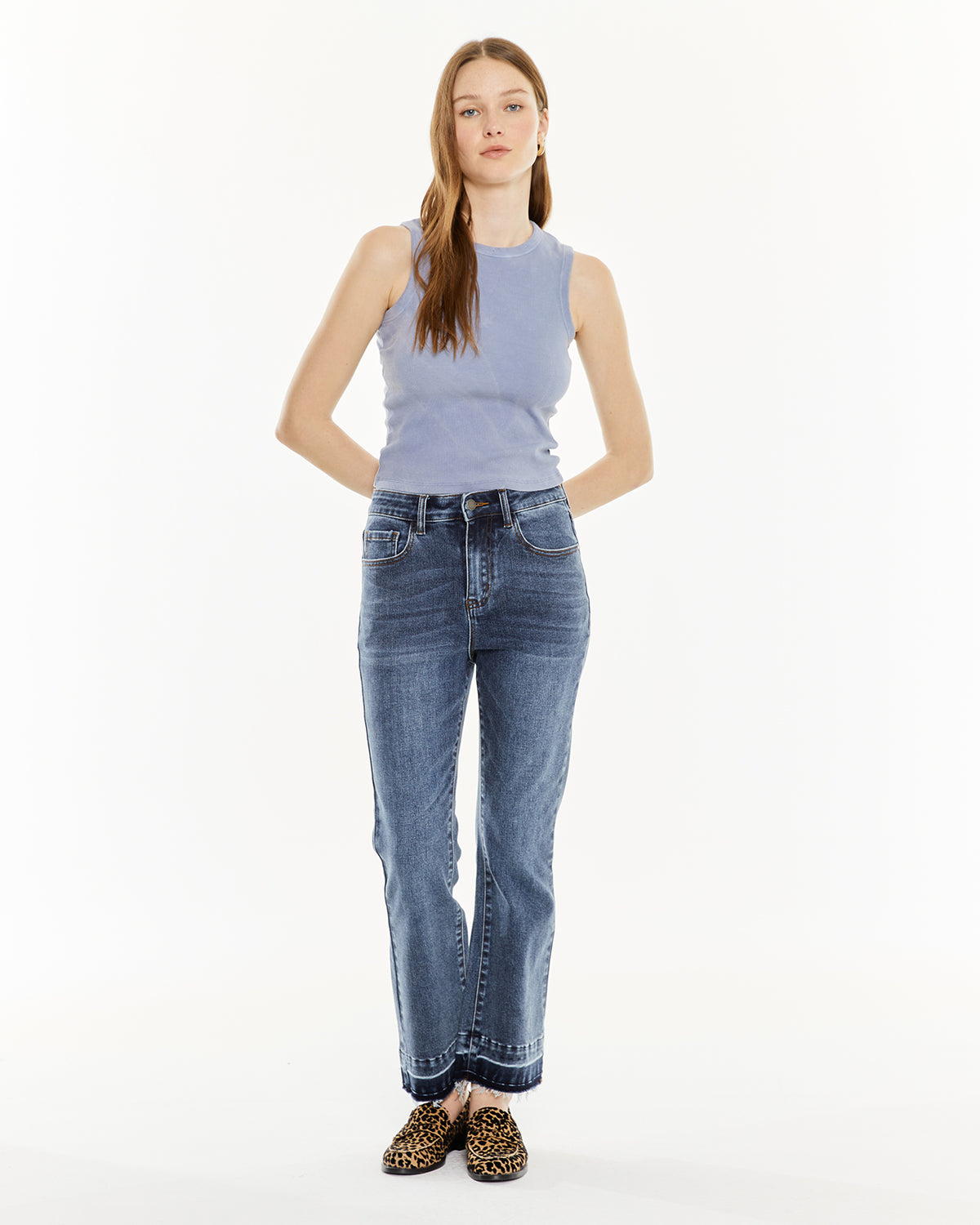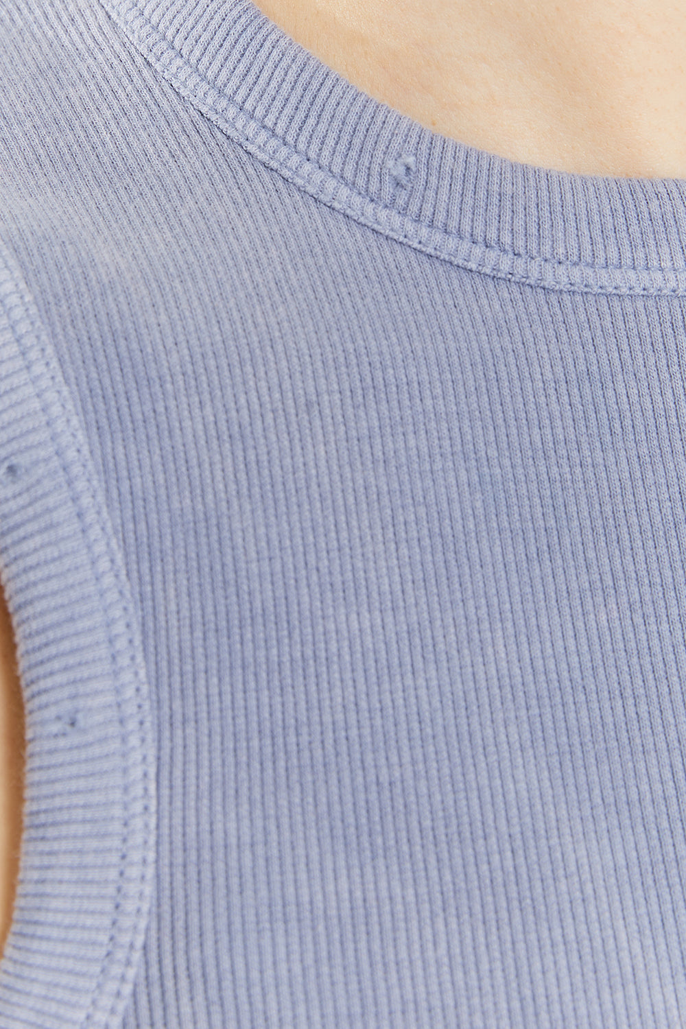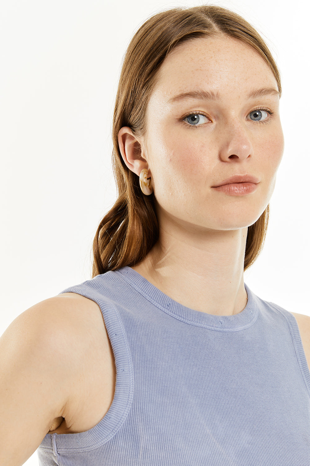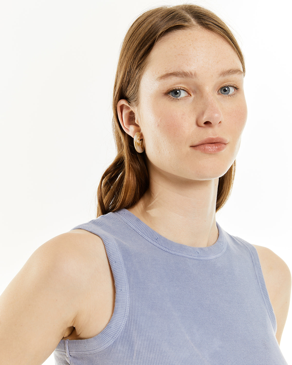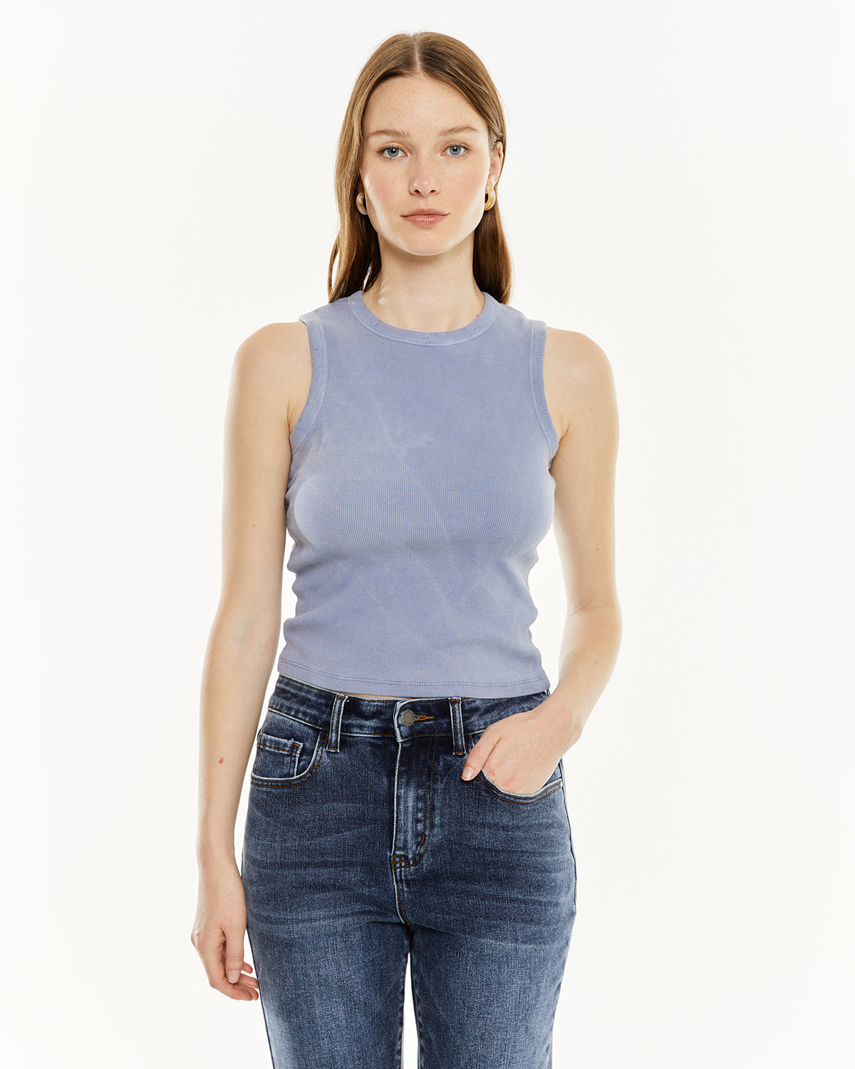 T-shirt sans manches pour femme avec teinture effet délavé. Vêtement durable.