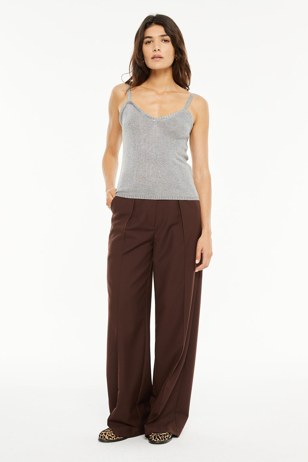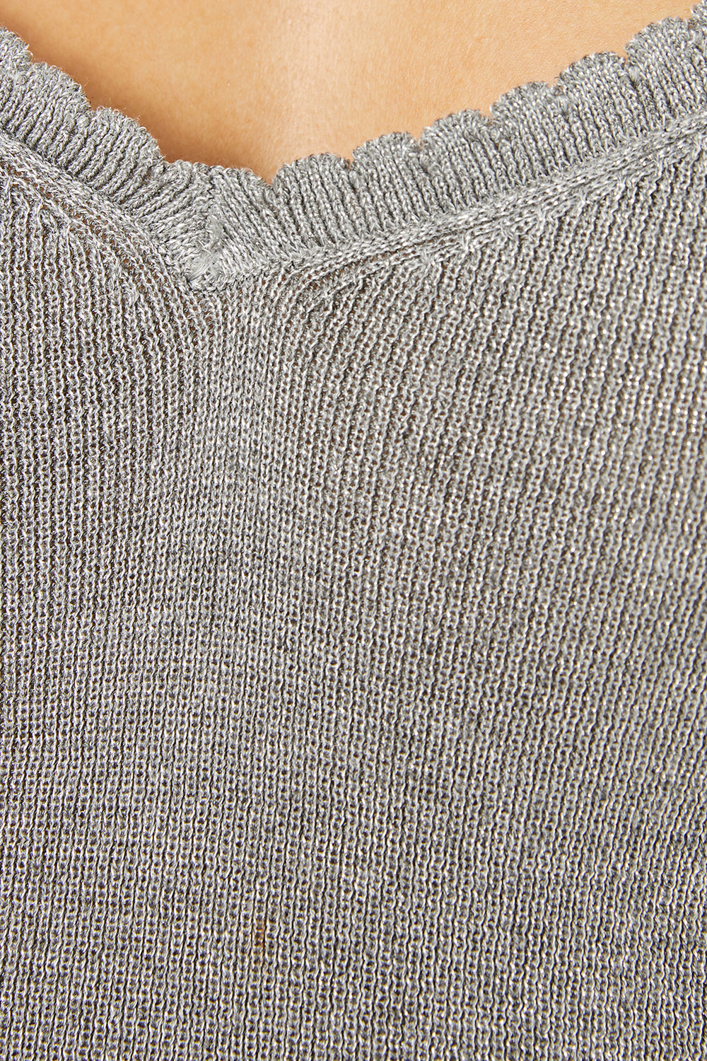 Top en maille avec lurex, façonné à l'encolure et aux emmanchures.