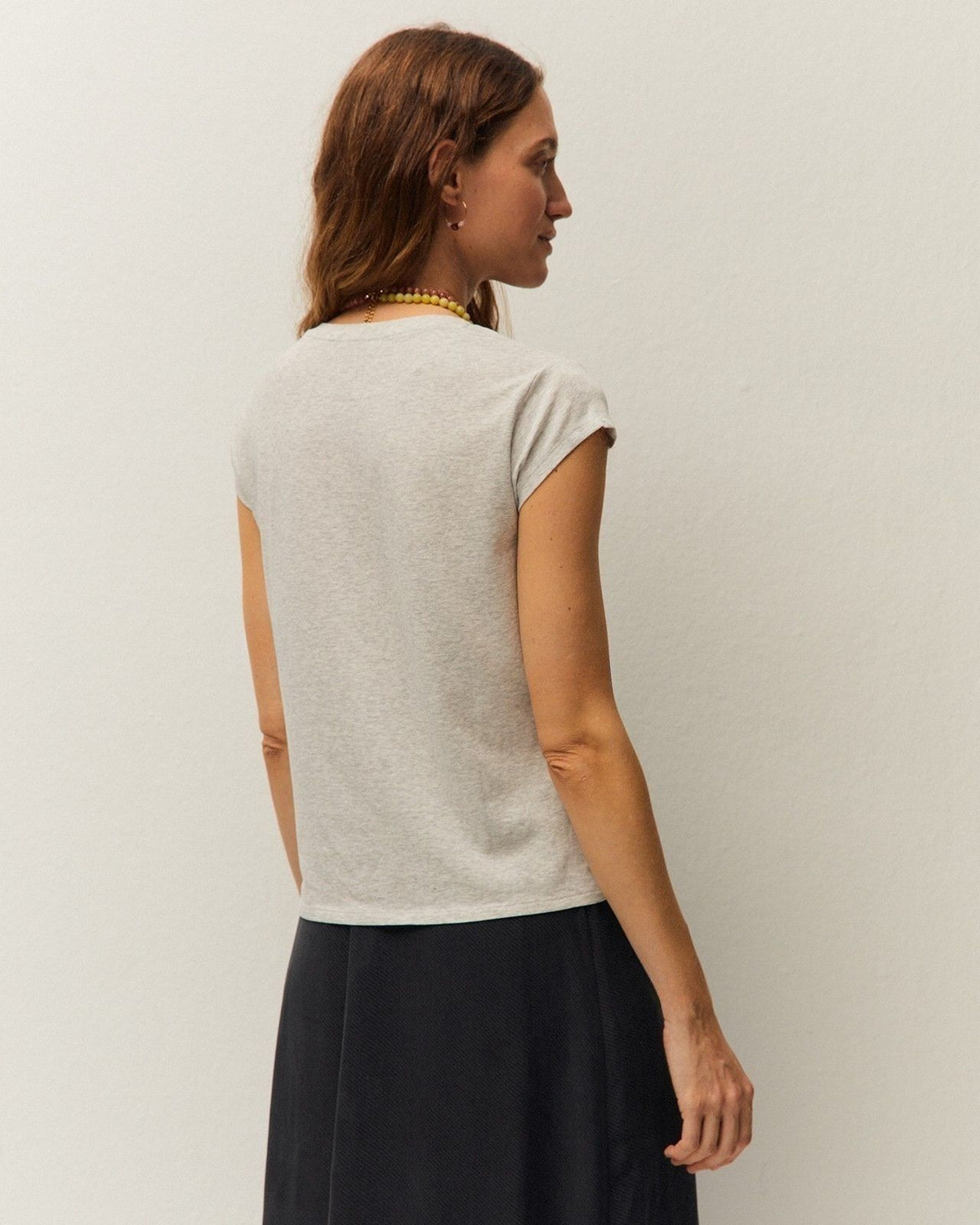 Camiseta básica con cuello redondo y manga corta. Prenda sostenible.