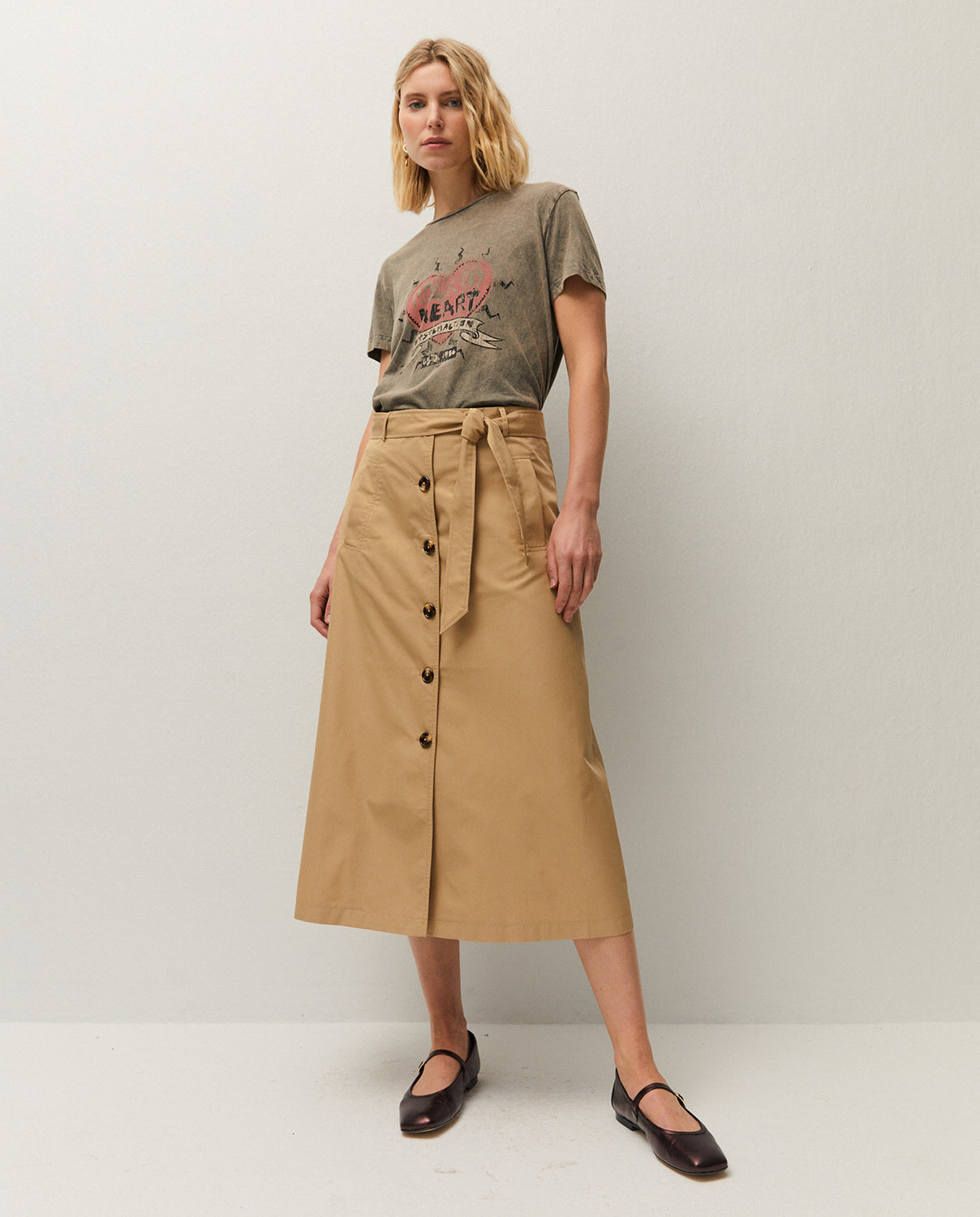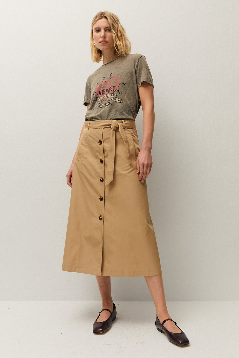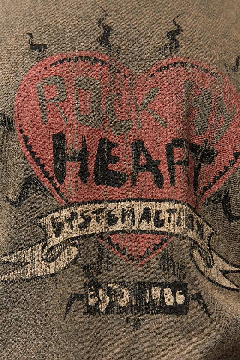 Camiseta de manga corta y cuello redondo, con print posicional en el delantero y tinte corrosivo. Prenda sostenible.