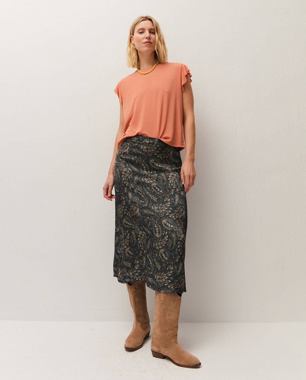La modelo mide 1,76m y utiliza la talla 38/M.