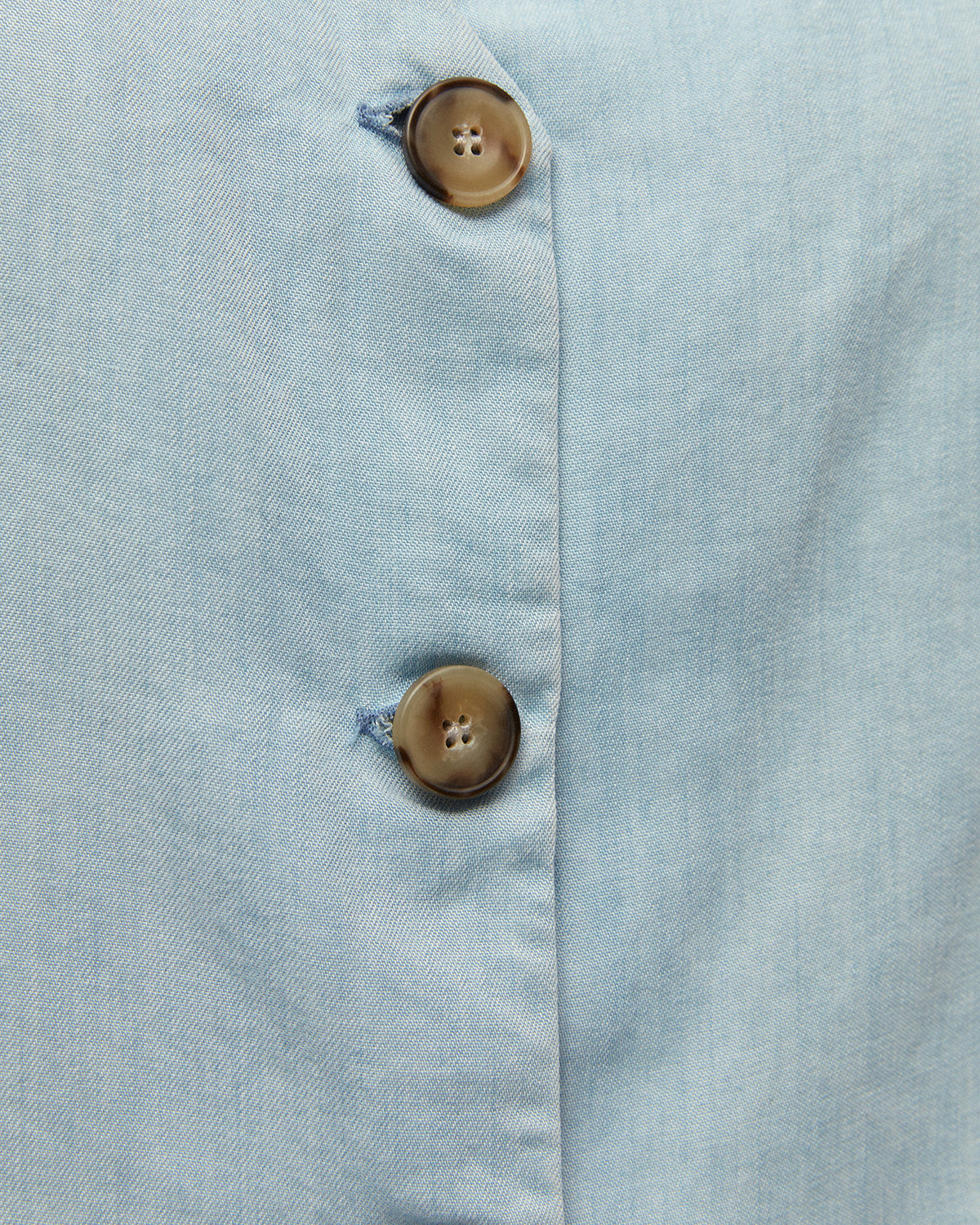 Chaleco de tencel con escote pico. Detalle de costadillos. Cierre con botones en el delantero. Prenda sostenible.