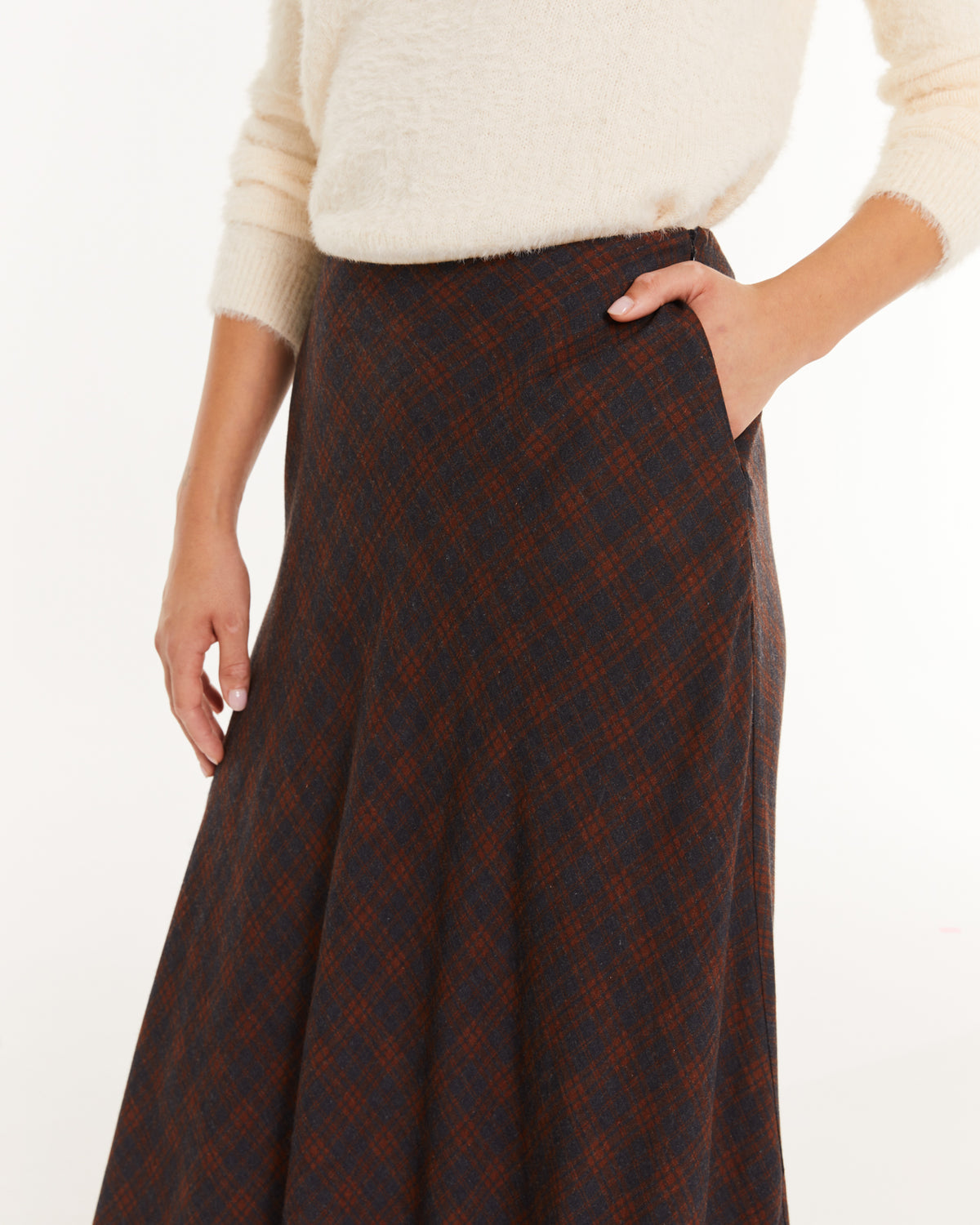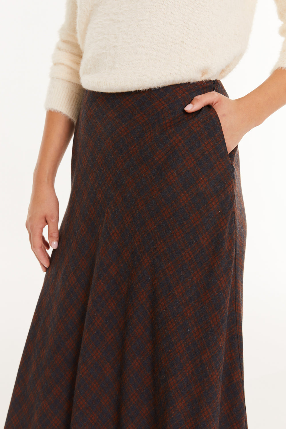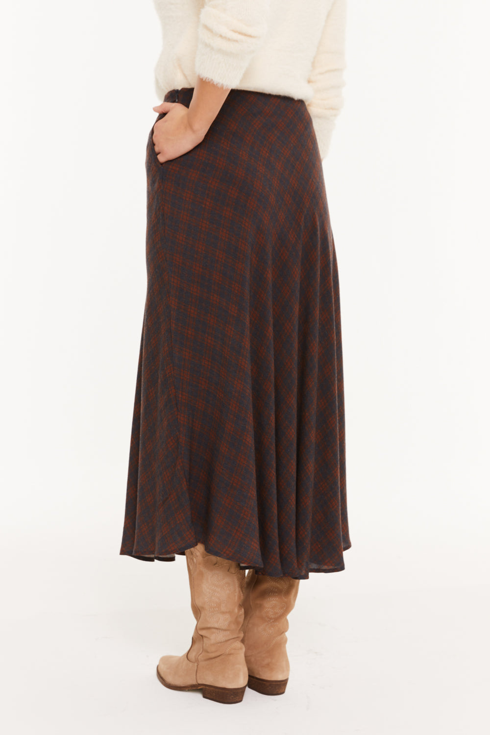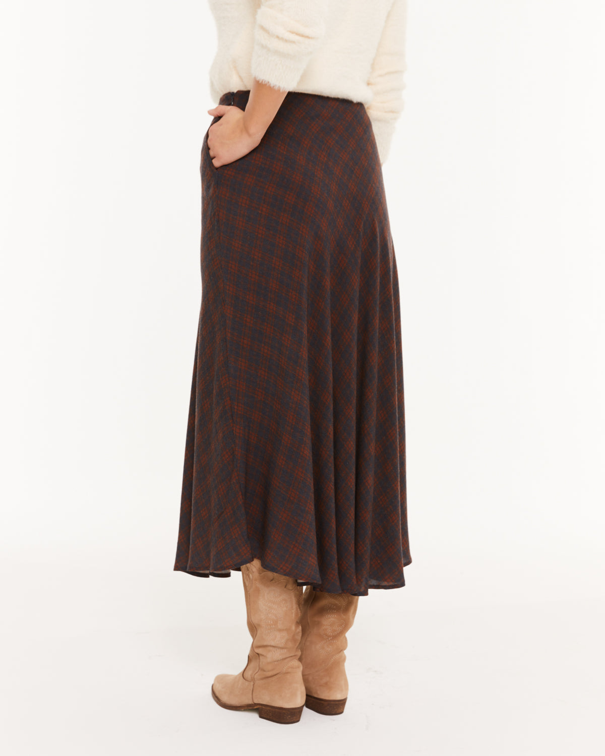 Falda mujer efecto evasé con un estampado de cuadros. Prenda sostenible