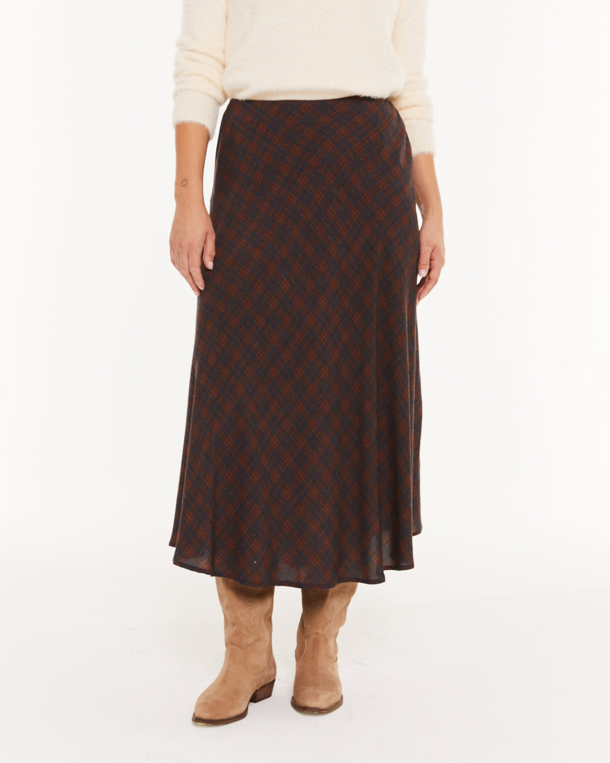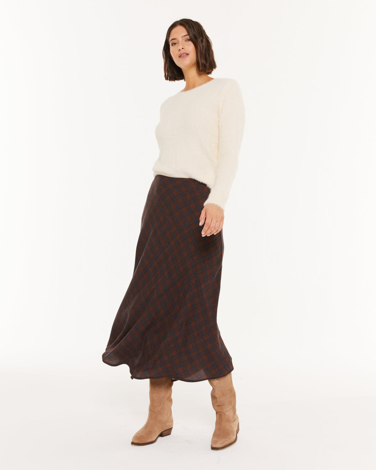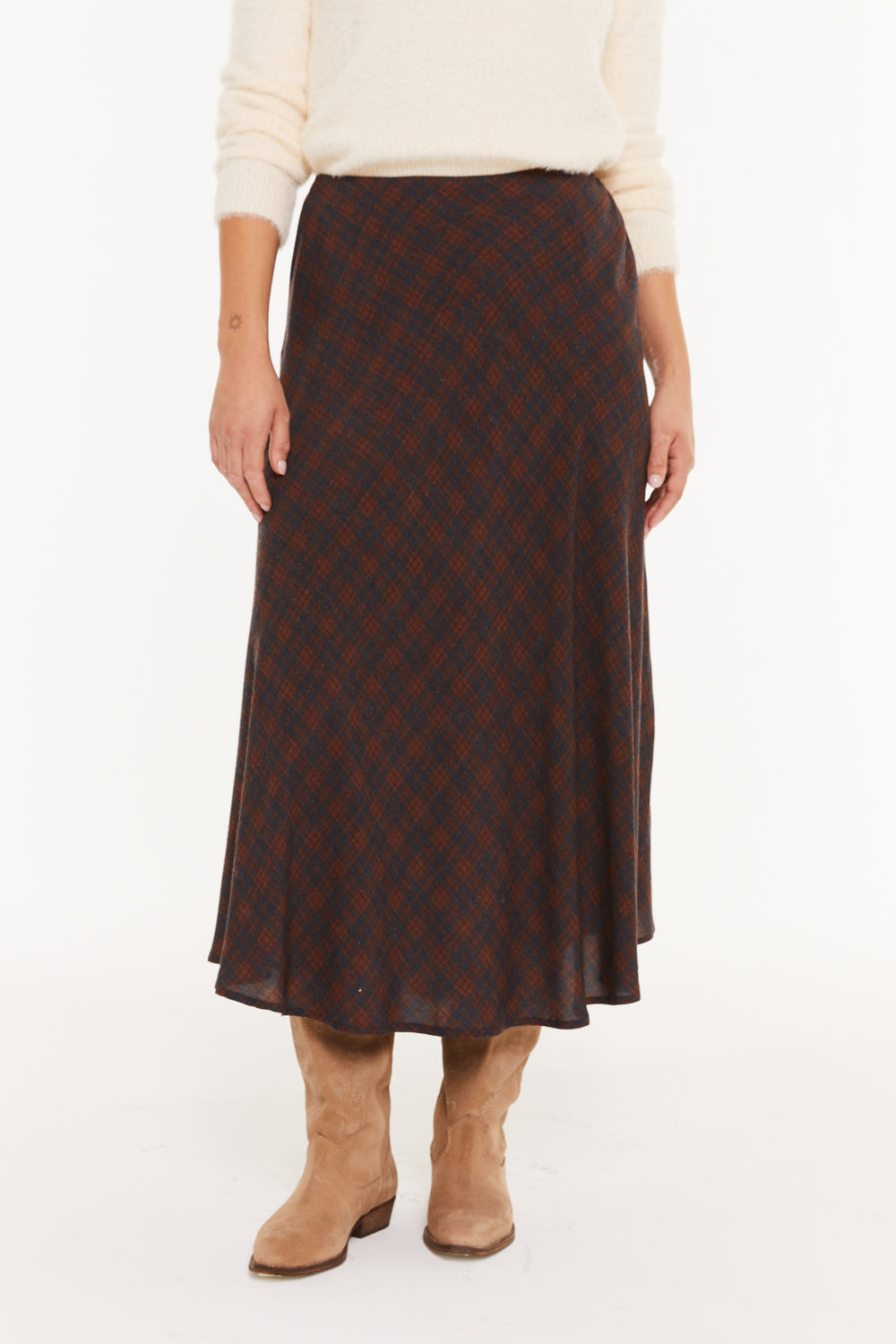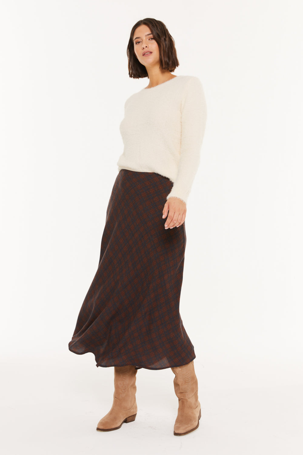 Falda mujer efecto evasé con un estampado de cuadros. Prenda sostenible