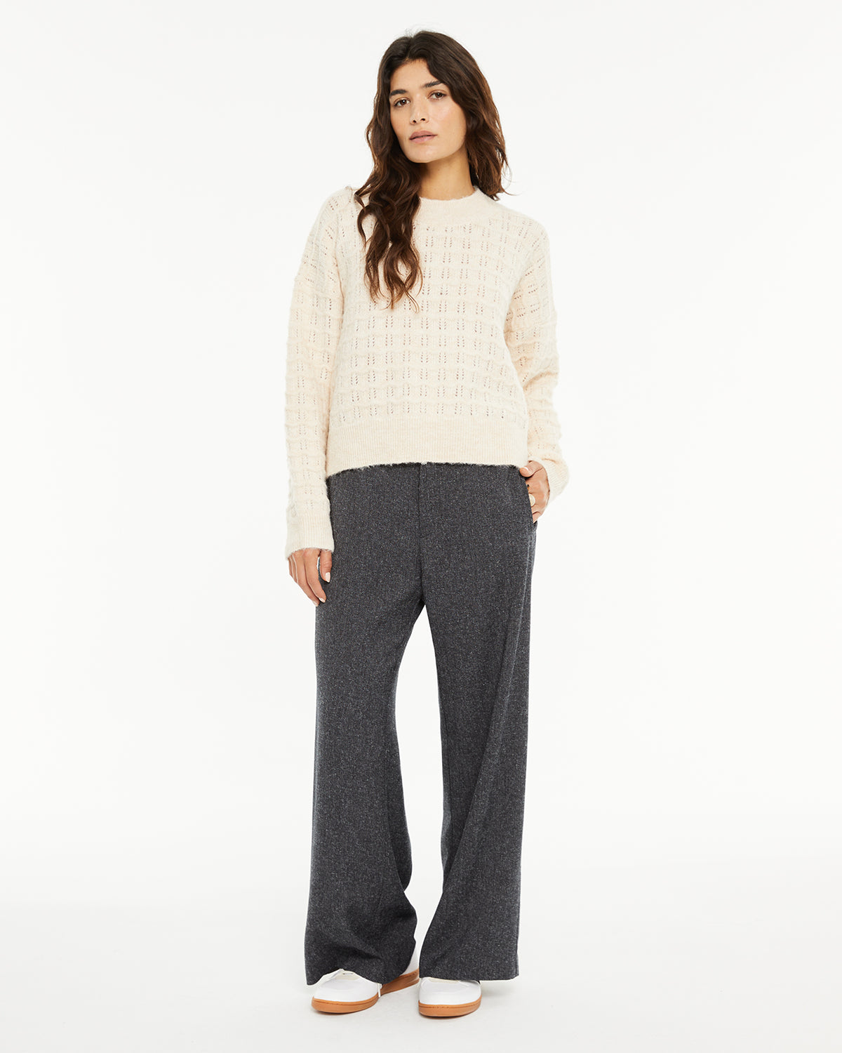 Jersey de mujer, escote redondo y punto con estructura. Prenda sostenible.