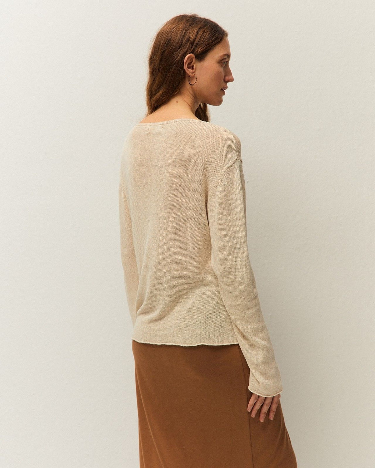 Jersey con cuello barco y manga larga. Prenda sostenible.