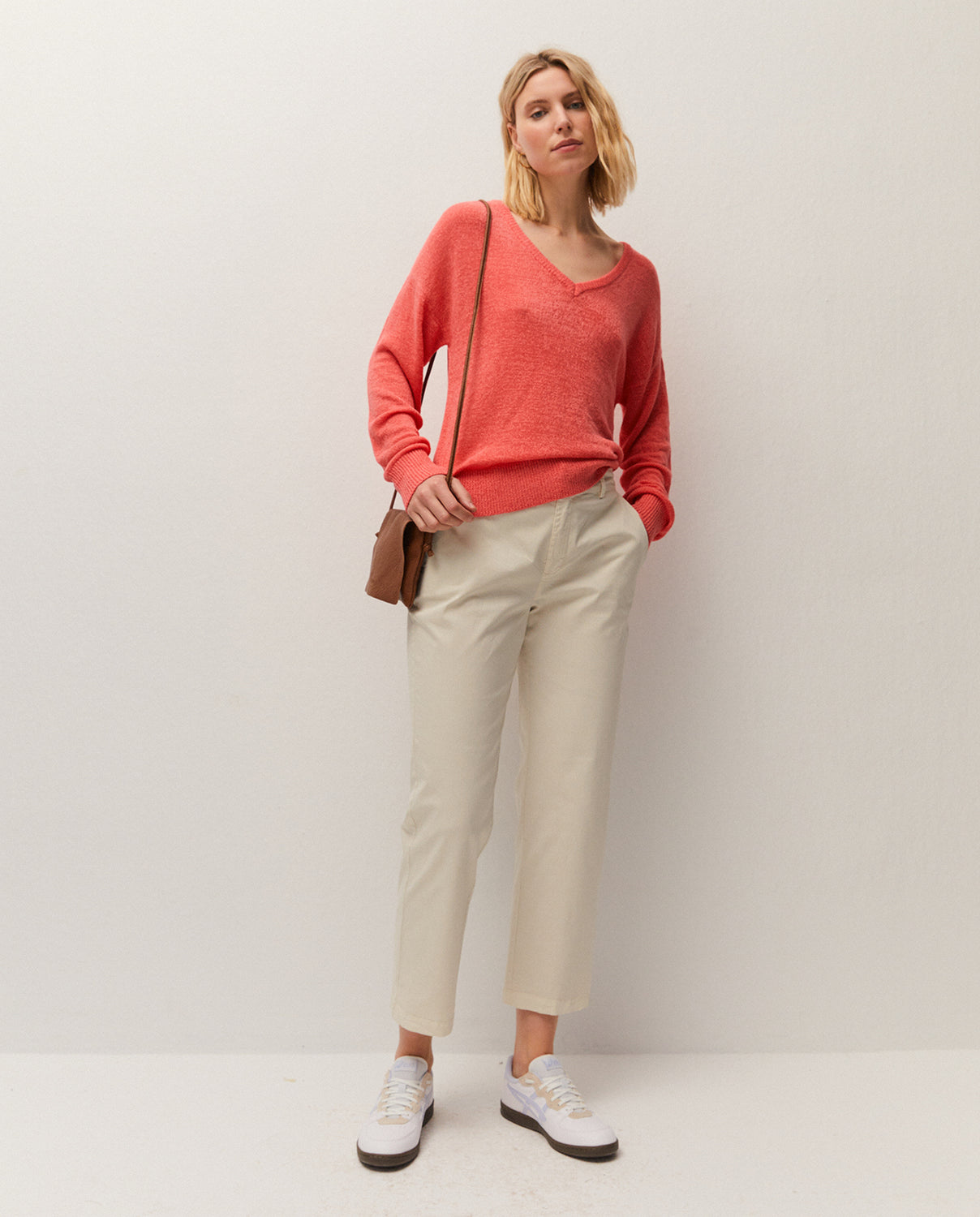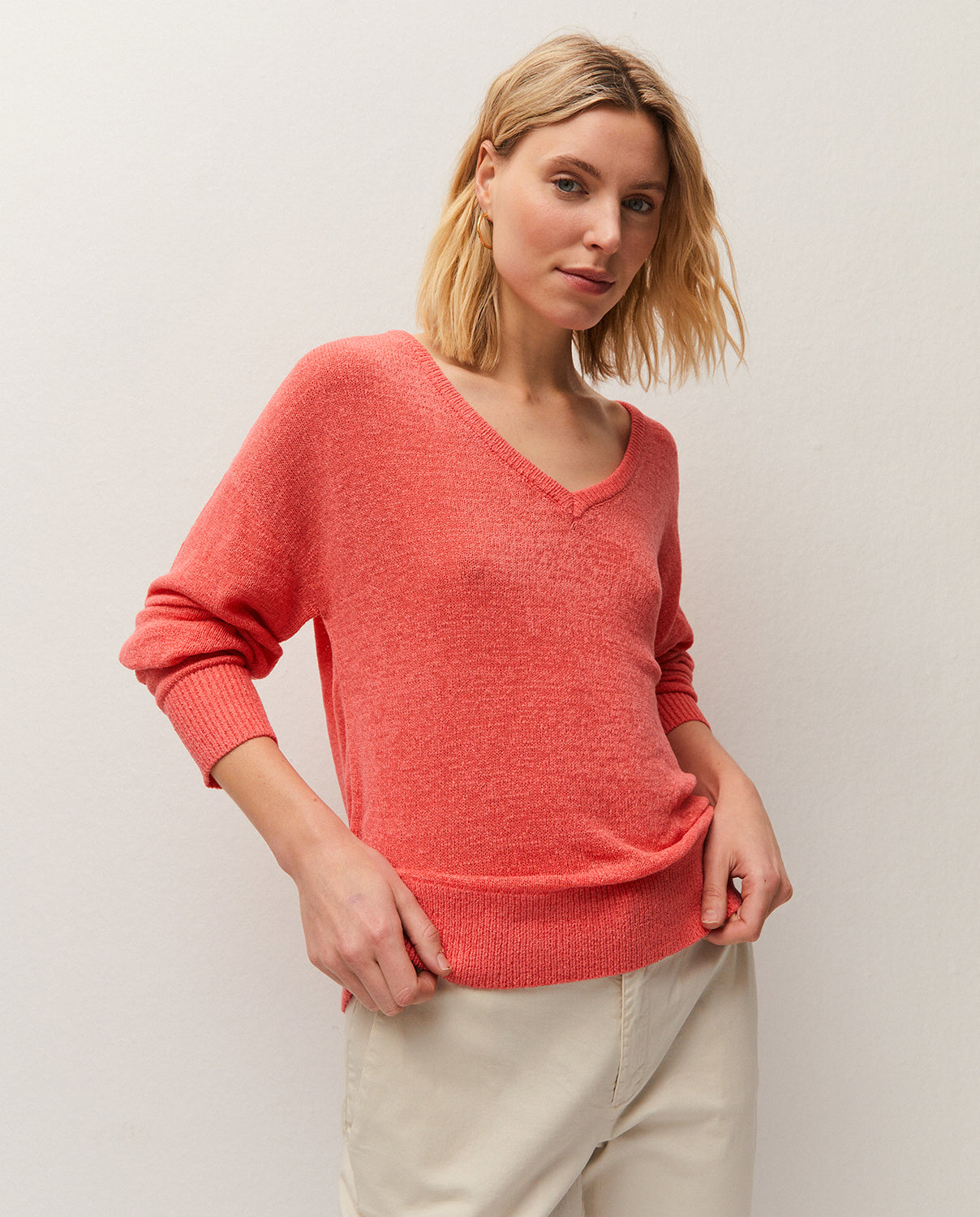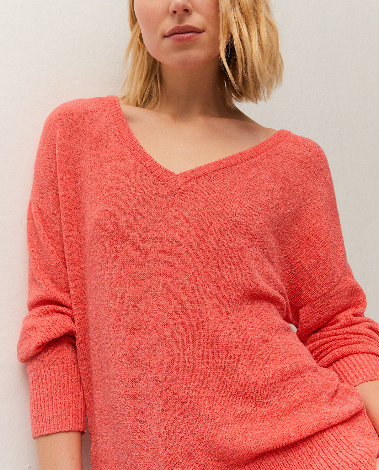 Jersey de mujer de cuello pico y manga larga. Acabados en rib.
