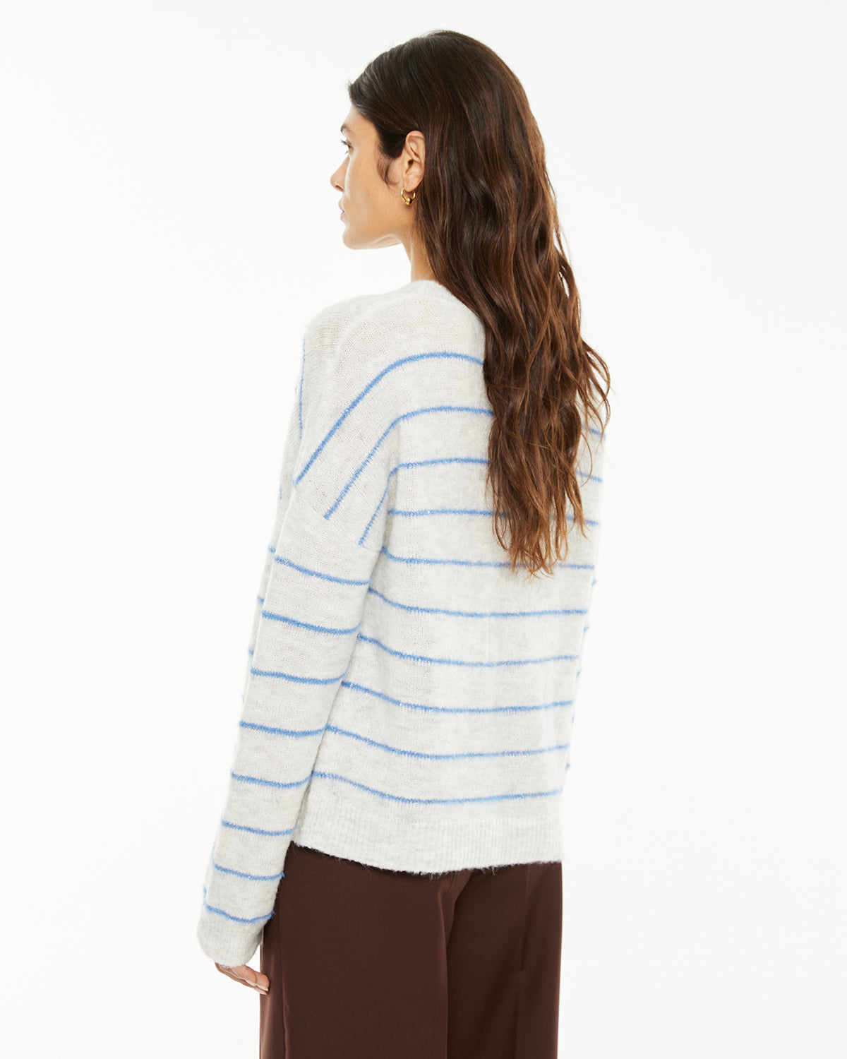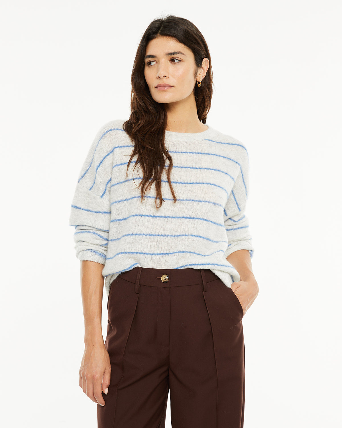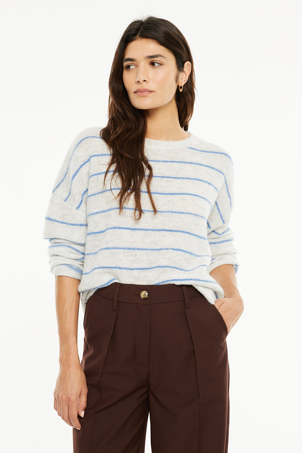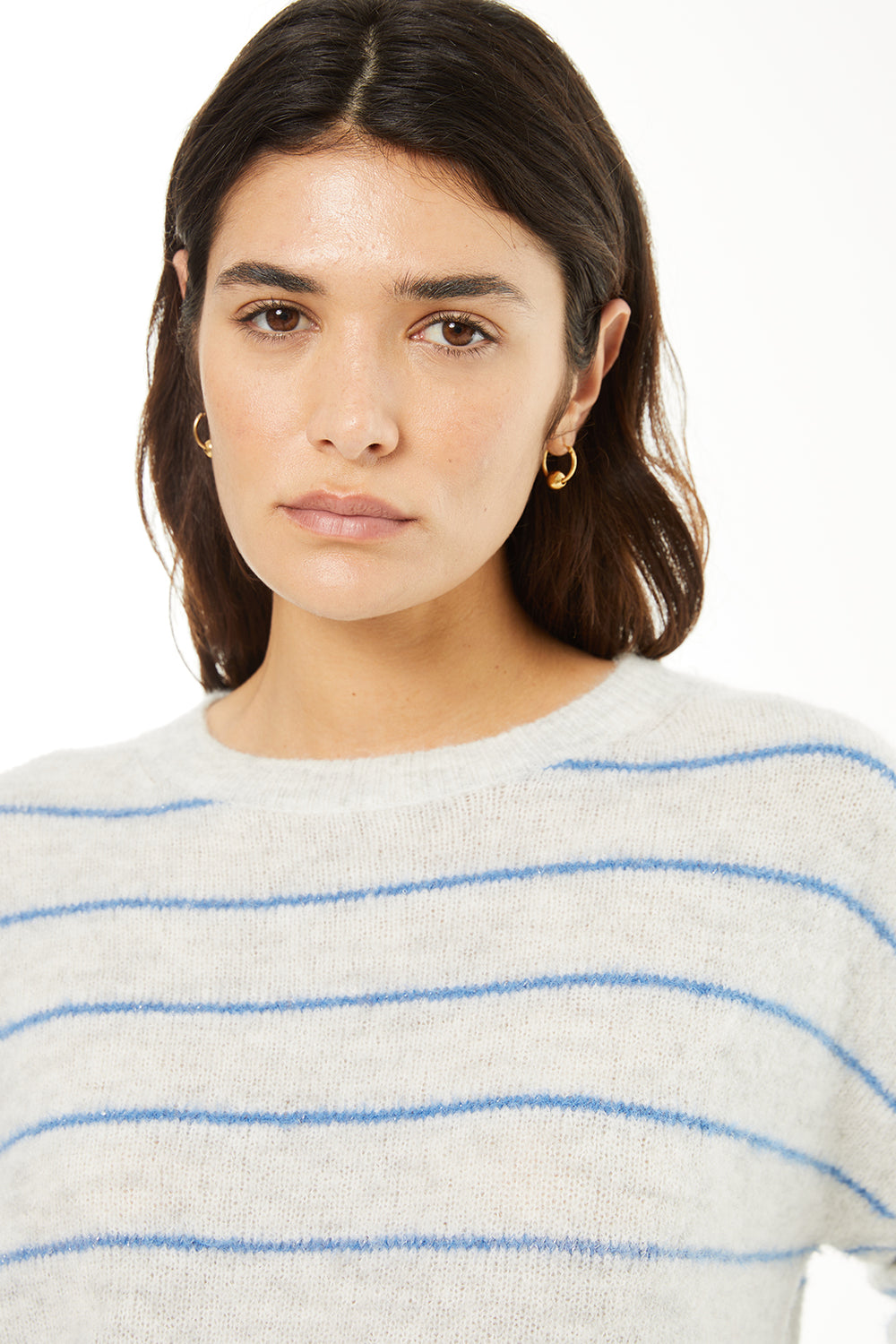 Jersey de mujer con rayas a contraste, escote redondo y acabados en rib.