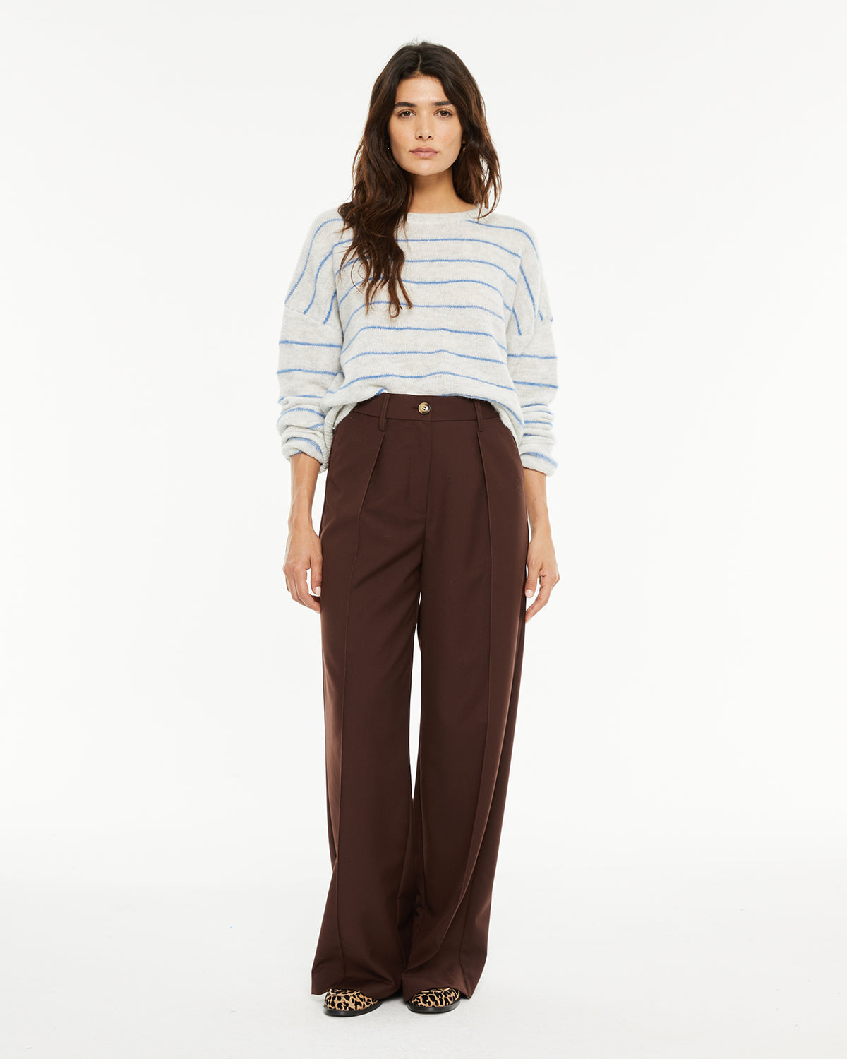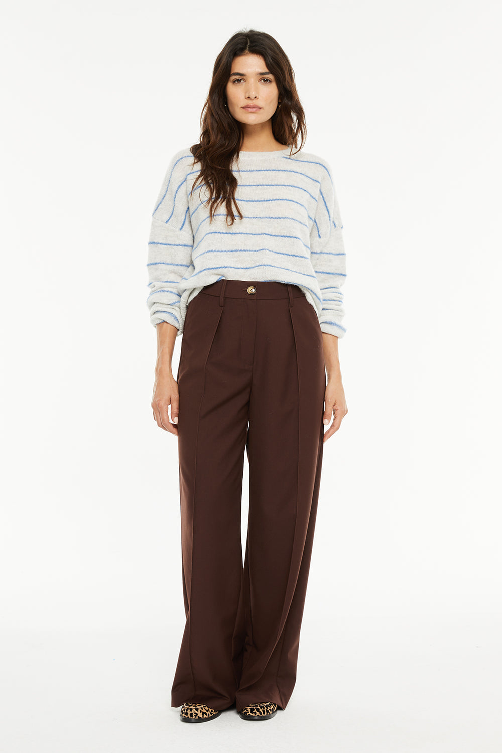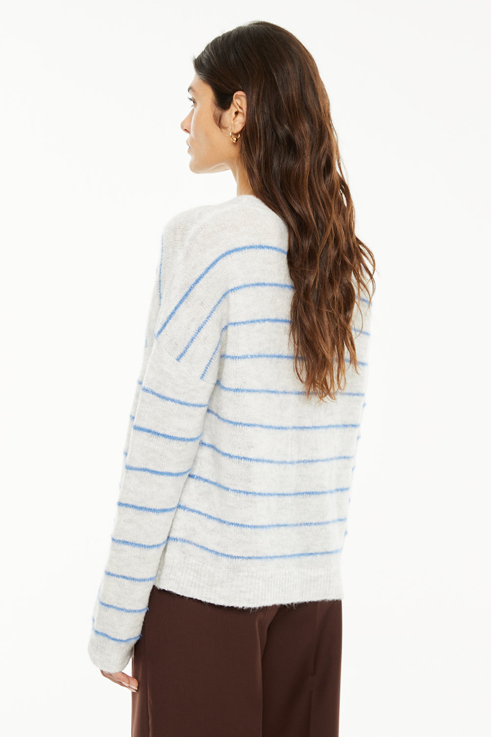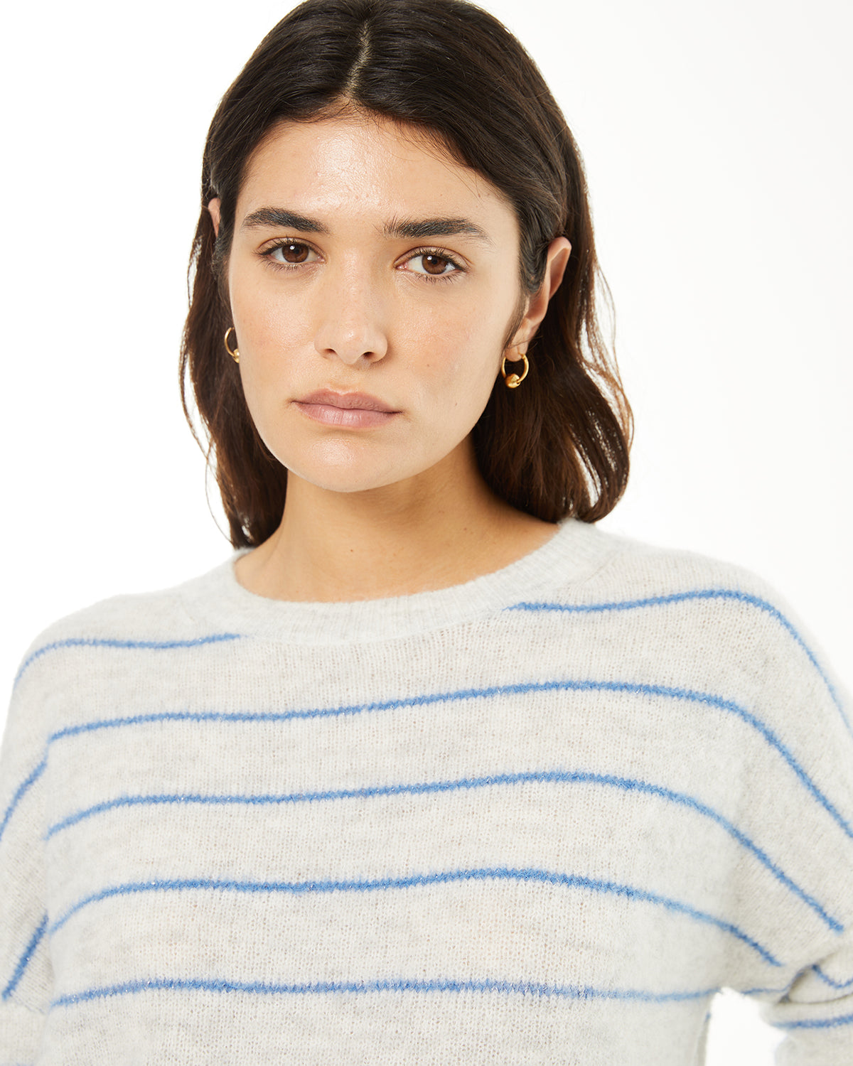 Jersey de mujer con rayas a contraste, escote redondo y acabados en rib.