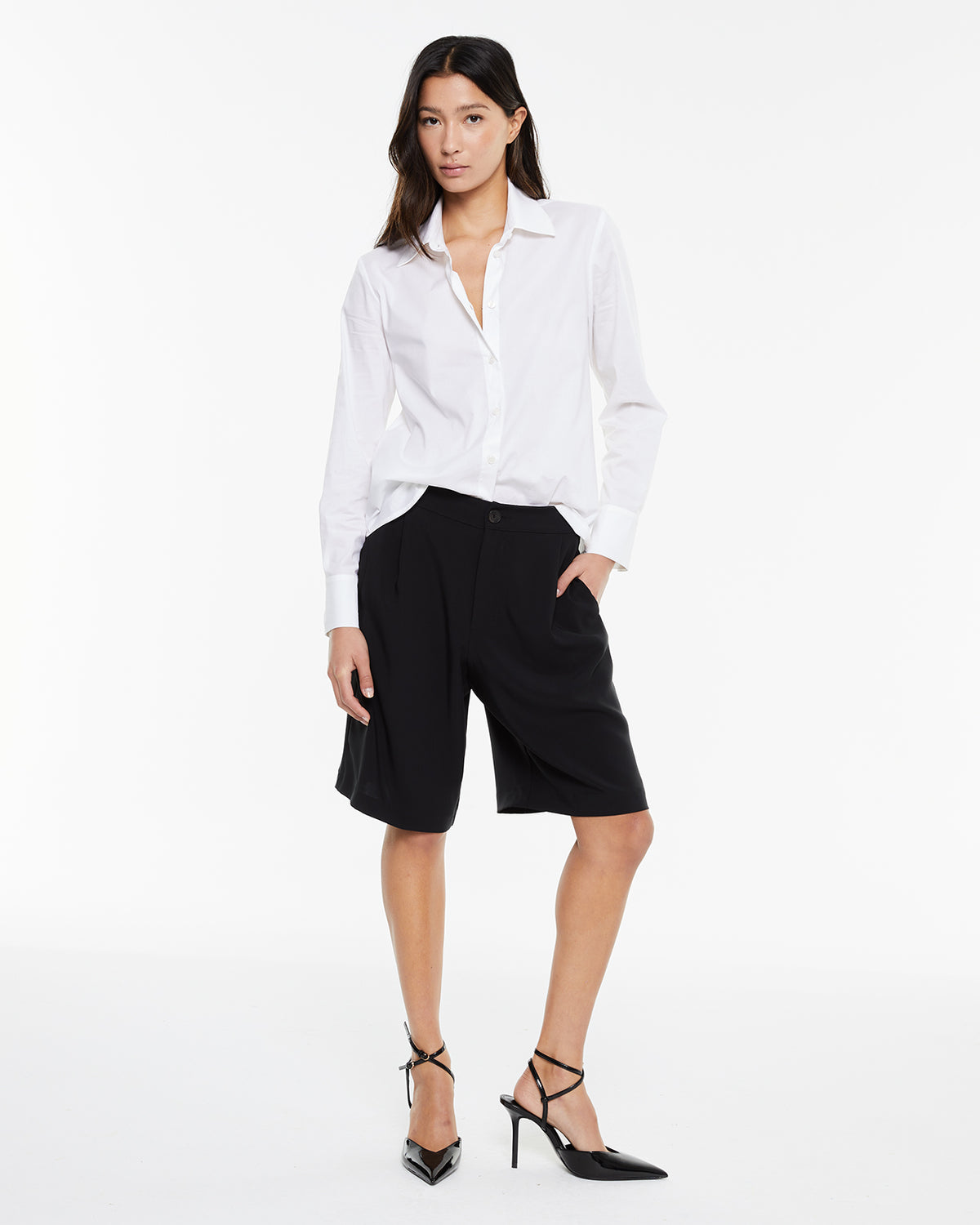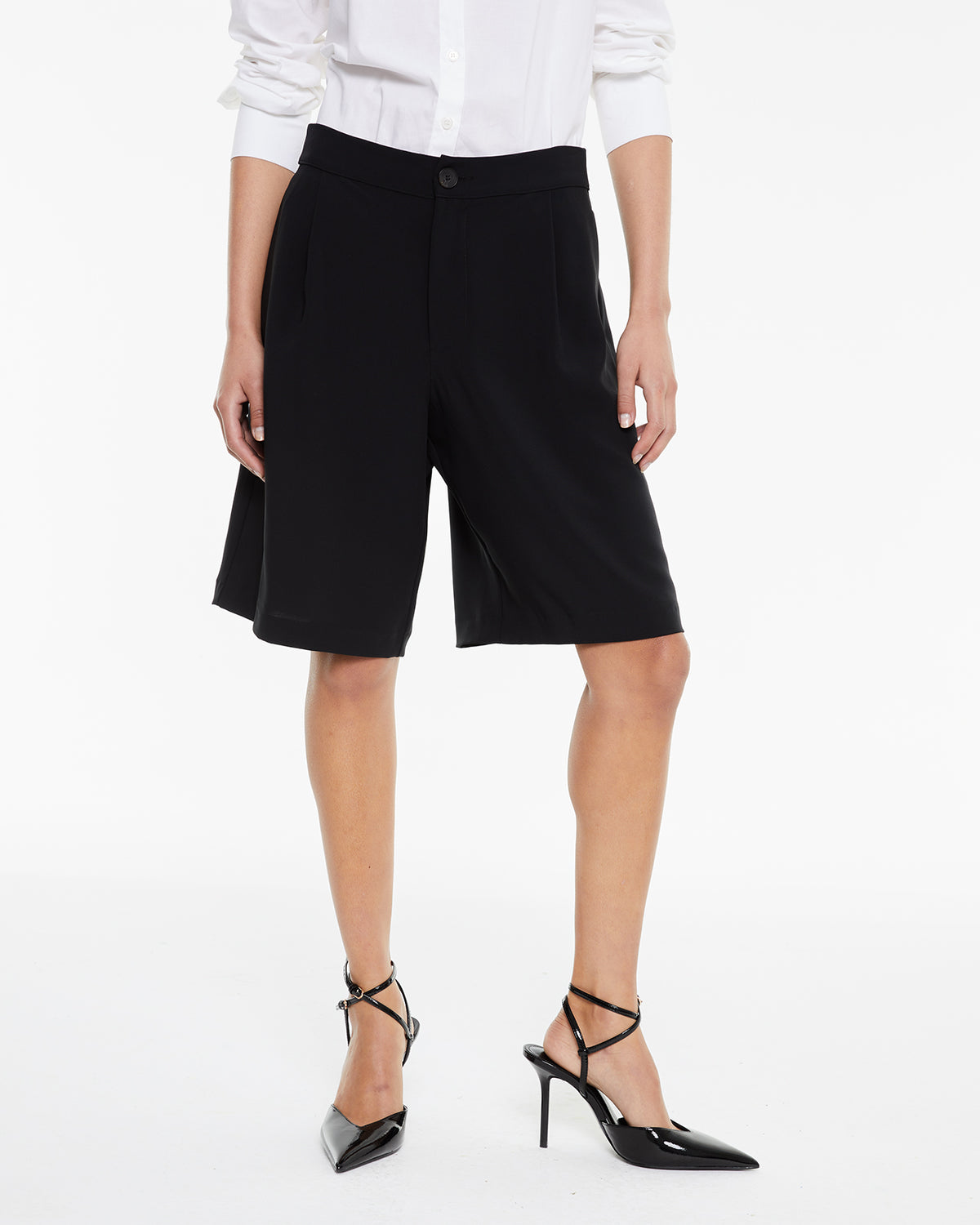 Short largo de mujer tipo sastre con pliegues delanteros.